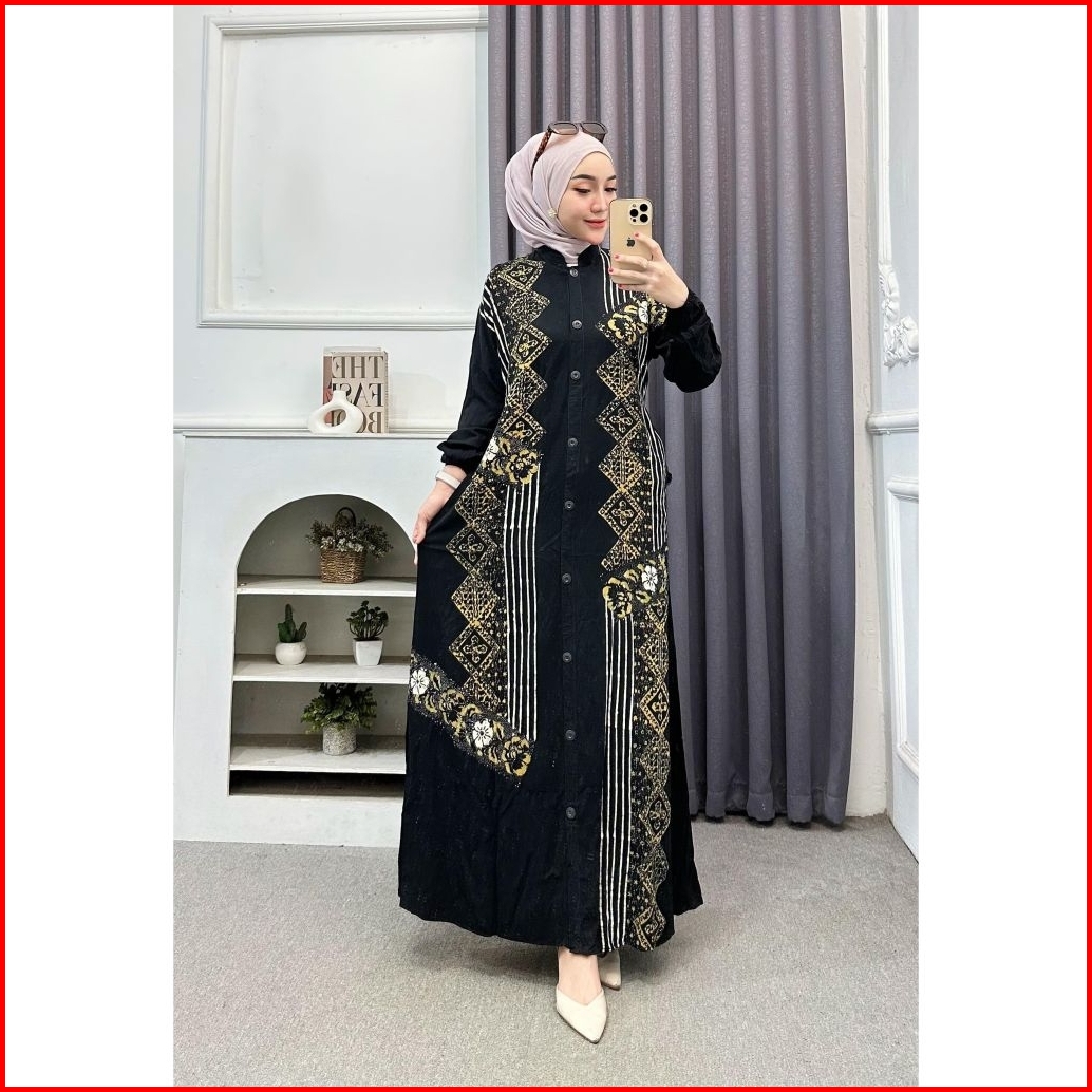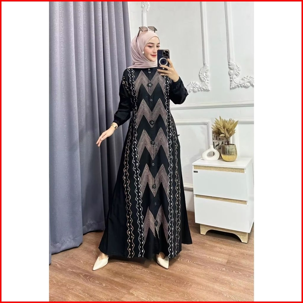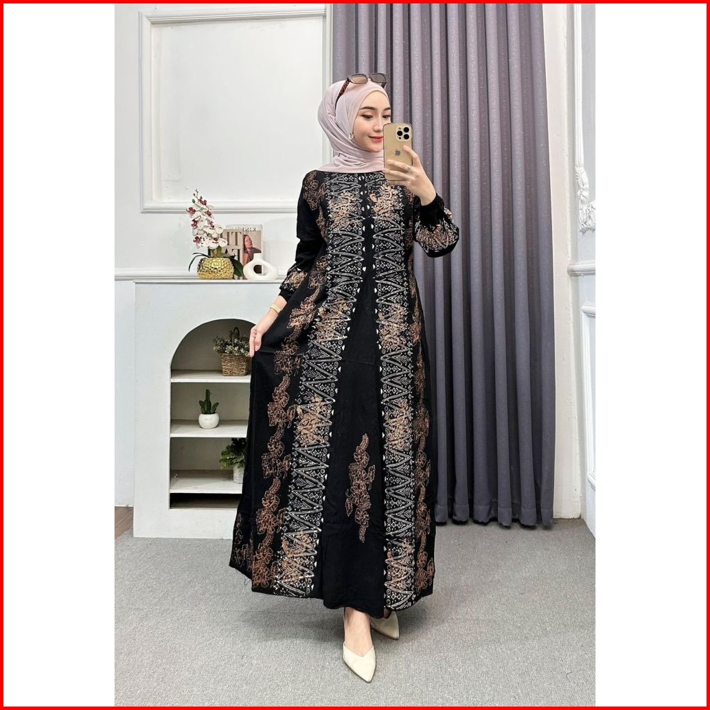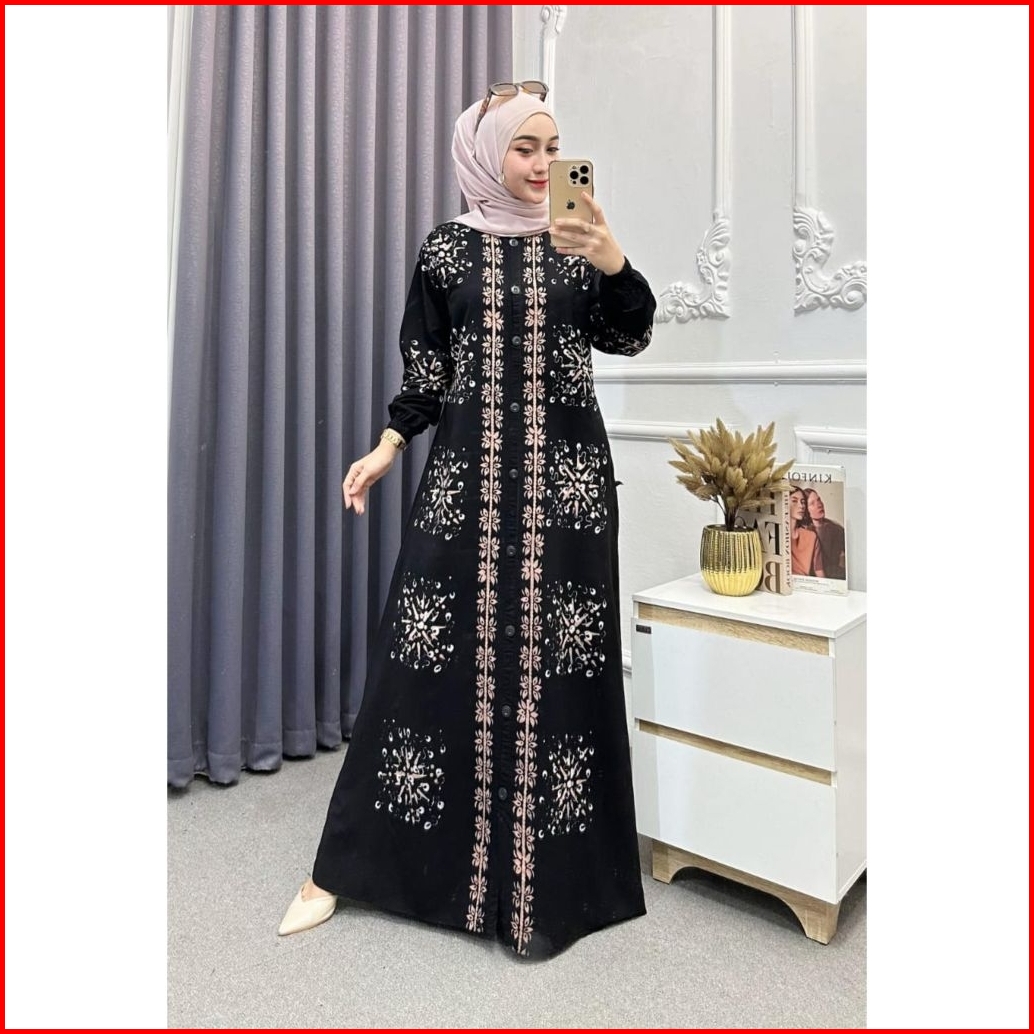 Gamis Rayon Premium Terlaris 2025 Proses Cap Malaman Full Kancing Depan Aktif 3 Tali Samping Busui Friendly Size M L Xl