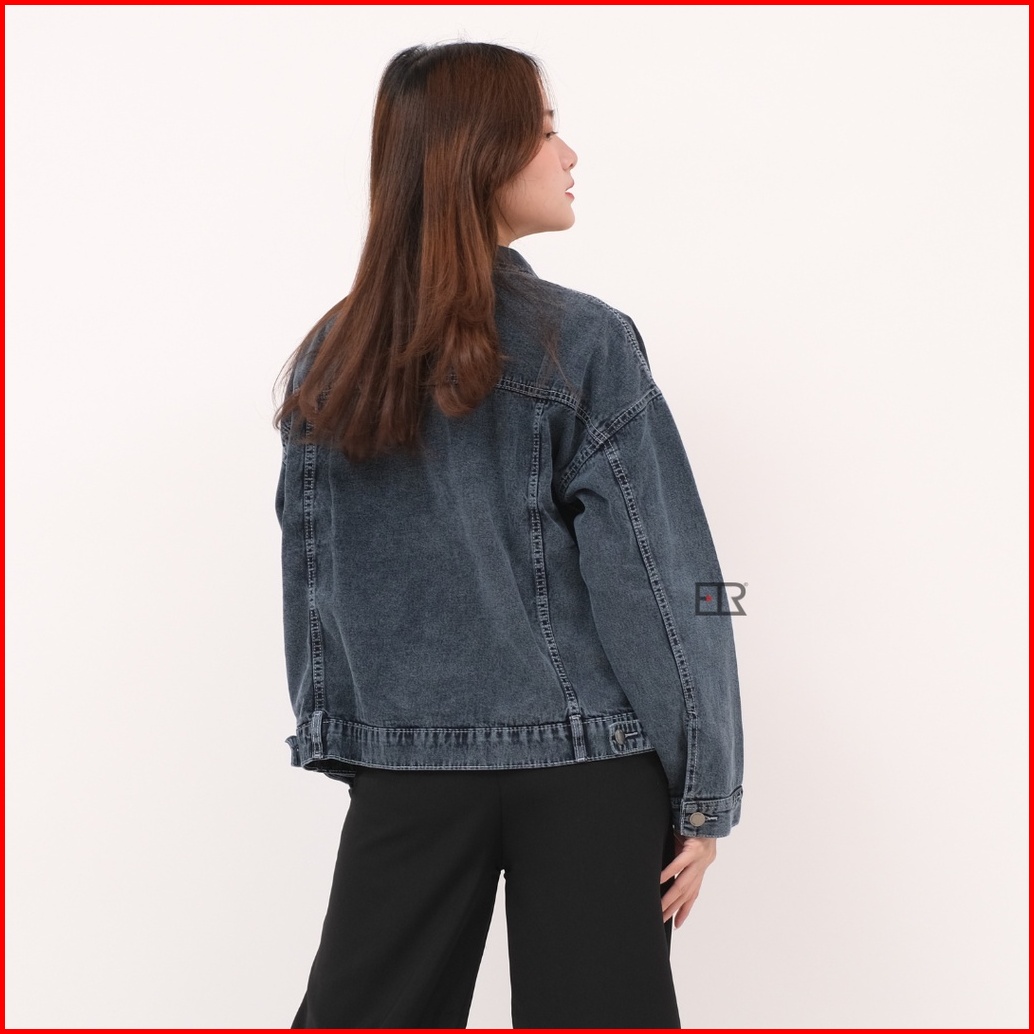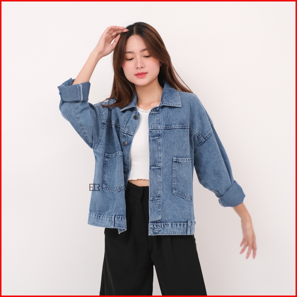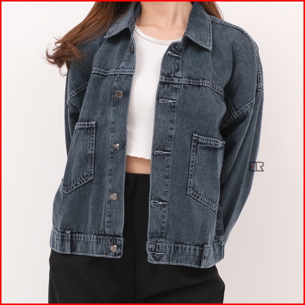 Jaket Jeans Oversize Saku Wanita Premium Korean Retro
