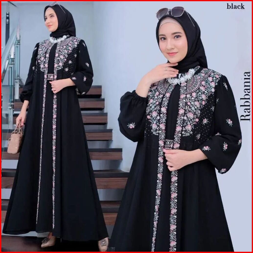 New Belt Rabbania Dress Bahan Cerutty Babydoll Dress Bordir Dress Kondangan Gamis Terbaru 2023 Lebaran Wanita Gaun Pesta
