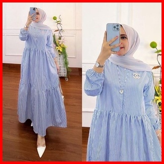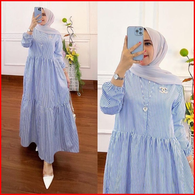 Terbaru Midi Dress Chika Long Dress Muslim Matt Katun Salur Murah Outfit Muslim Wanita Ef