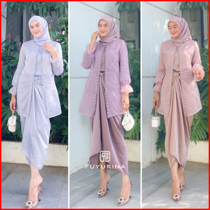 Oneset Jemma Organza Premium Outfit Lebaran Kondangan Setelan Rok Lilit