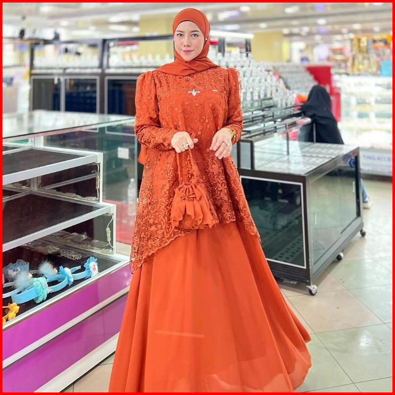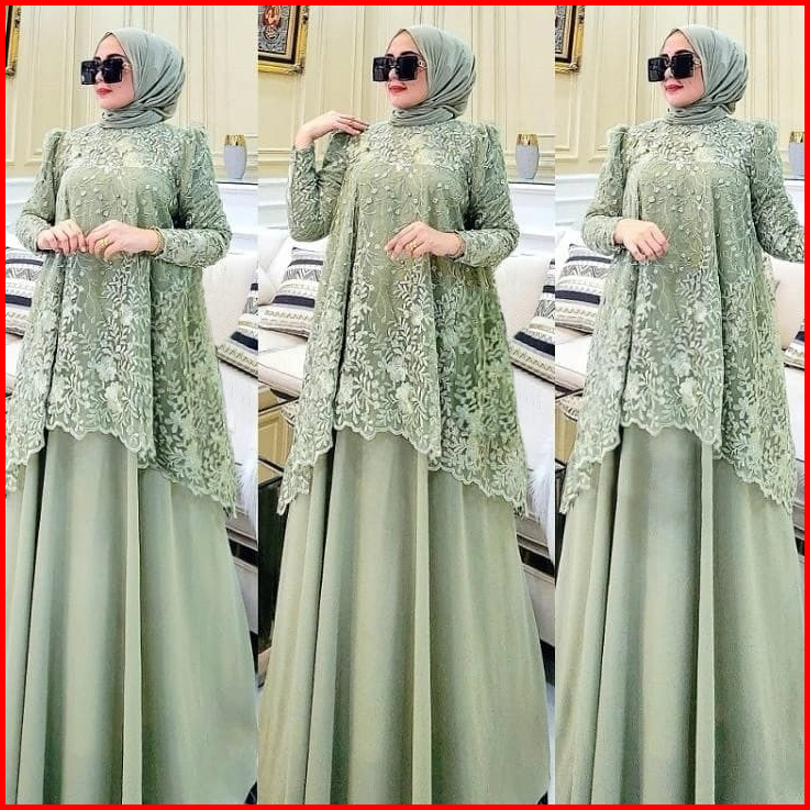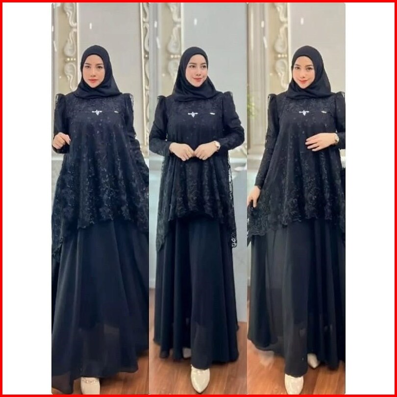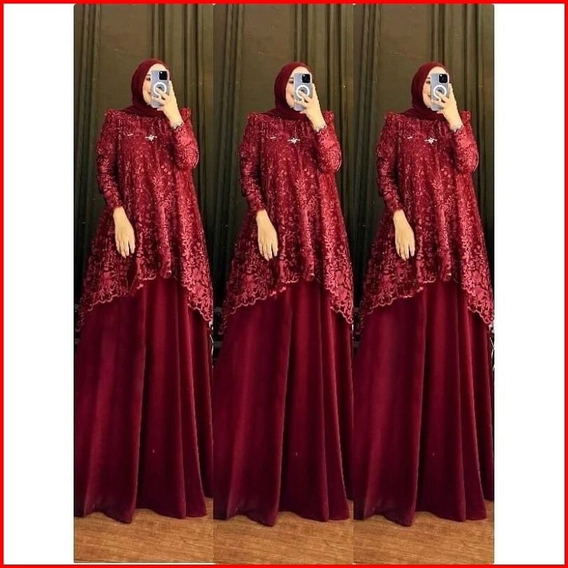 Gamis Terbaru Lebaran 2024 Mewah Dress Gamis Maxi Brokat Bahan Ceruty Babydoll Pull Puring Adem Dan Trendy Gamis Pesta M