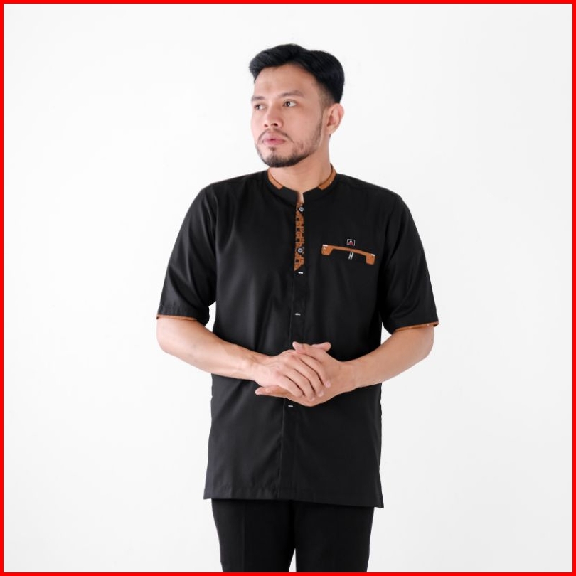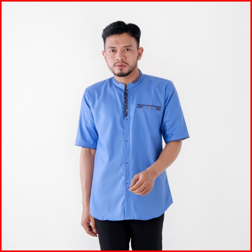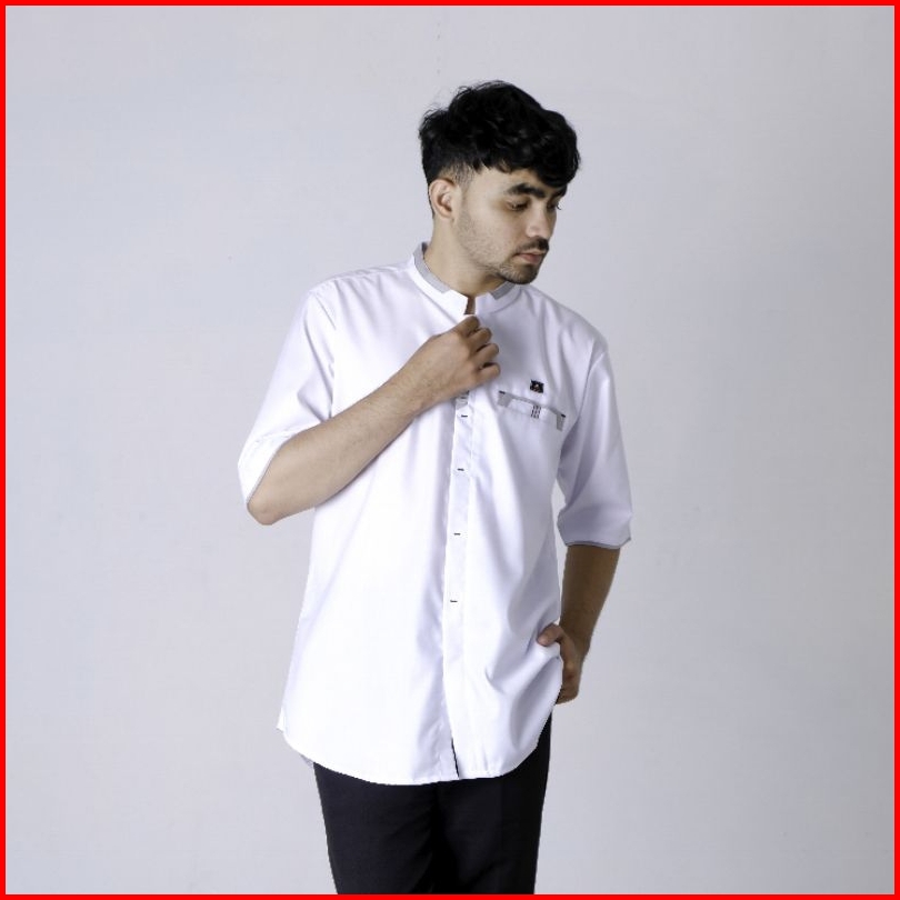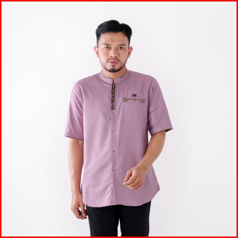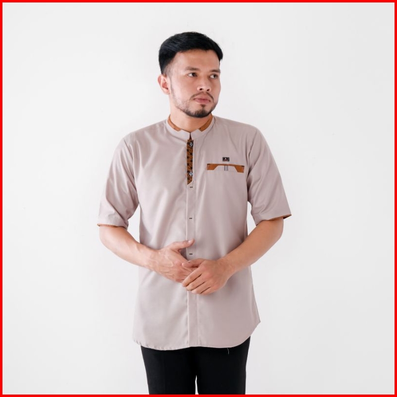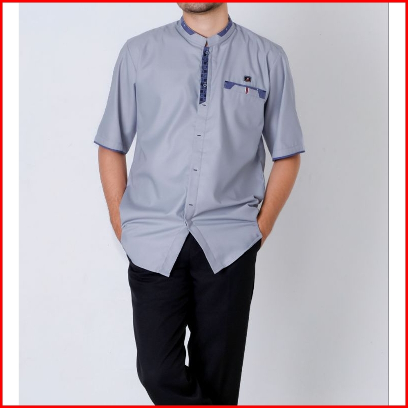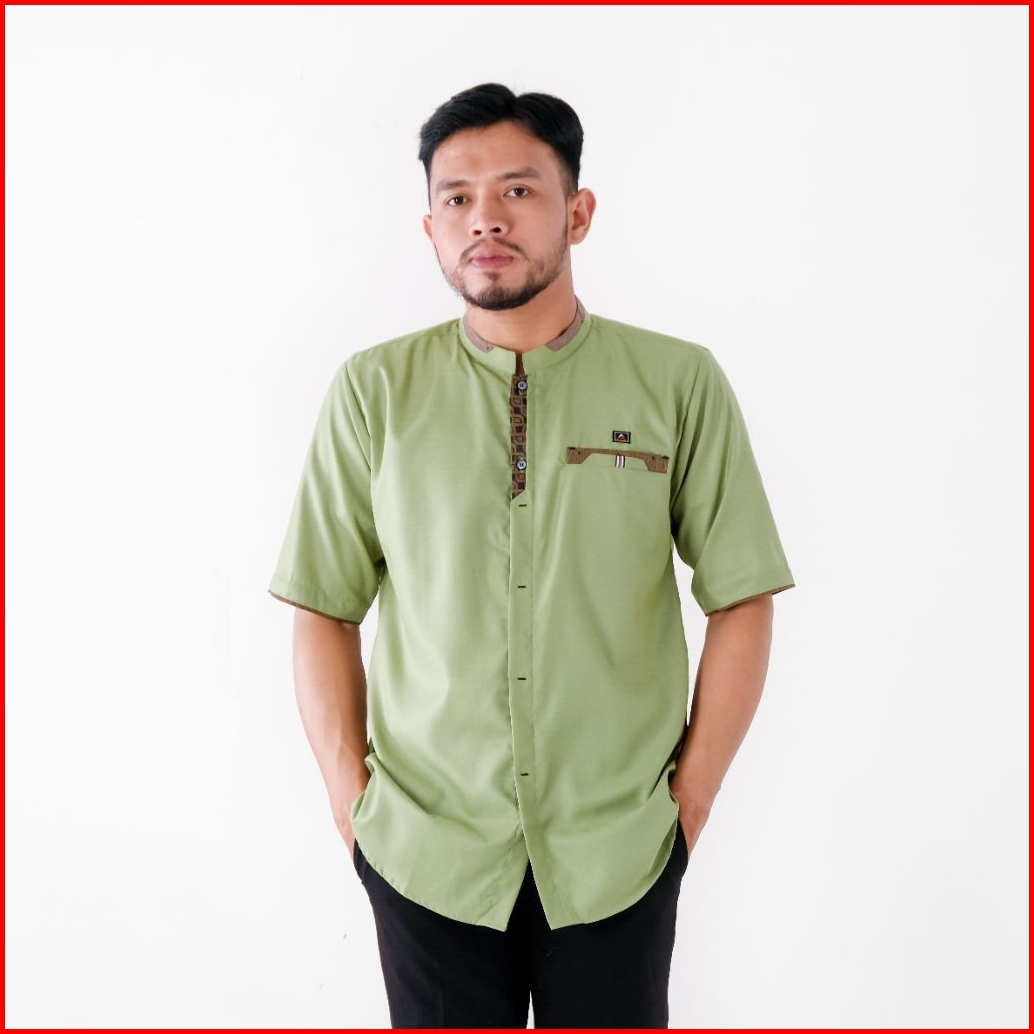 Anr Fadillah 08 - Kemeja Koko Pakaian Muslim Pria Atasan Muslim Baju Koko Lengan Pendek Sage Gren