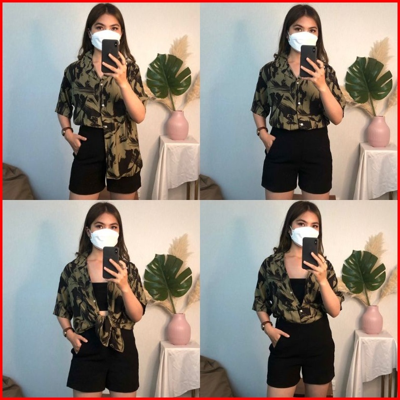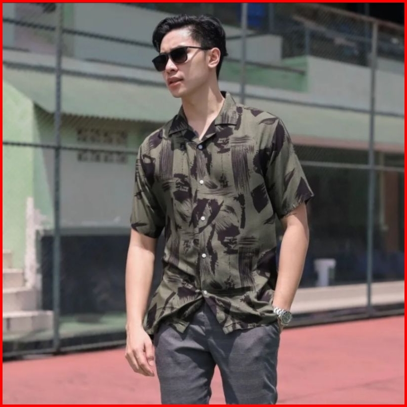 Must Kemeja Hawai Pria Wanita Motif Printing Abstrak Vintage Casual Shirt Lengan Pendek Retro