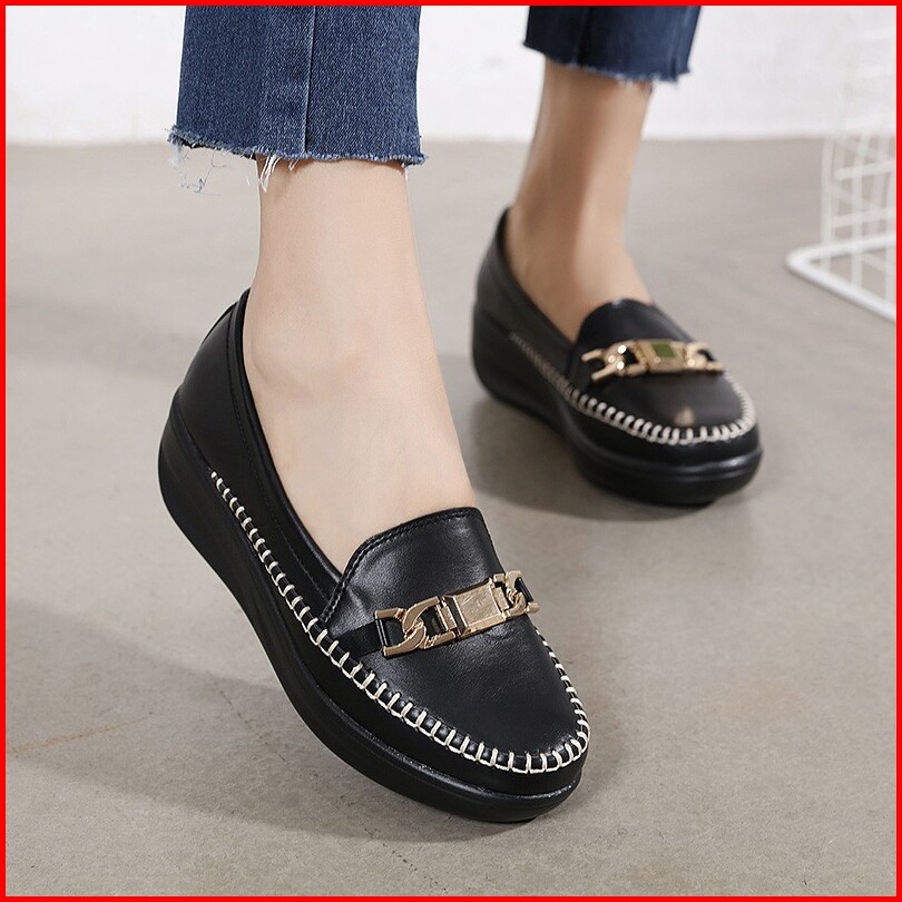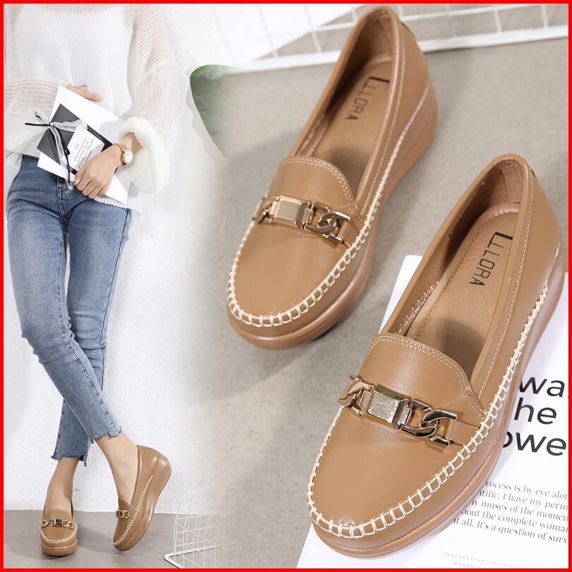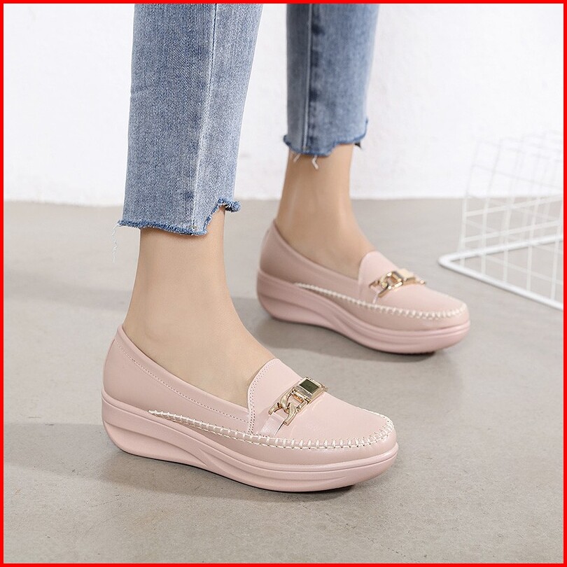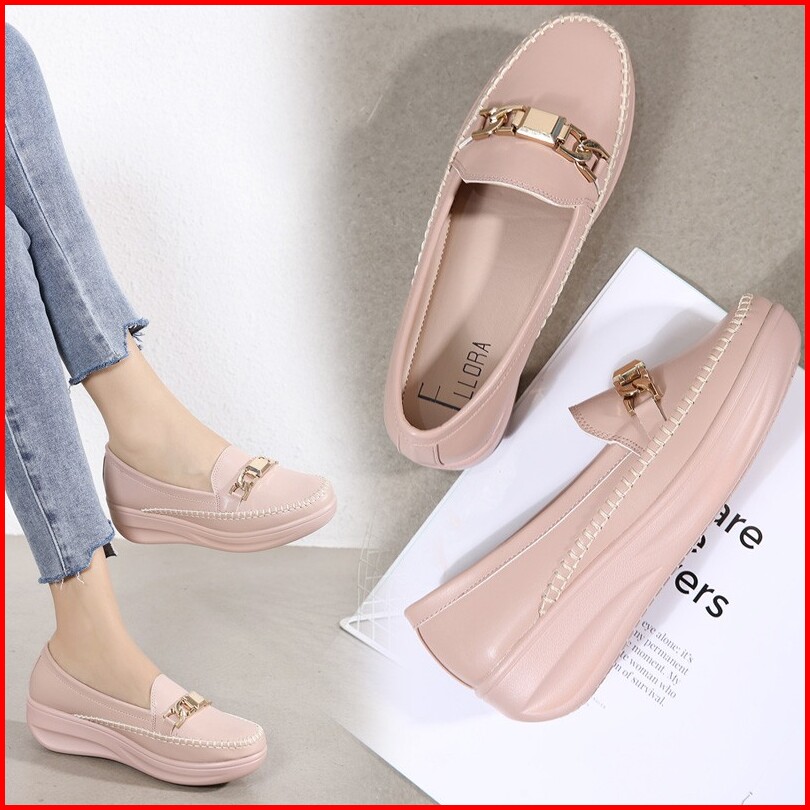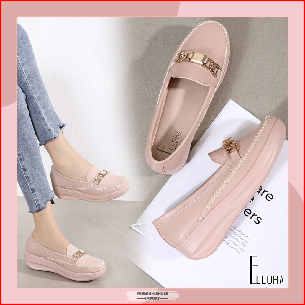 Ellora E1215 Sepatu Wedges Wanita Import Kulit 5cm