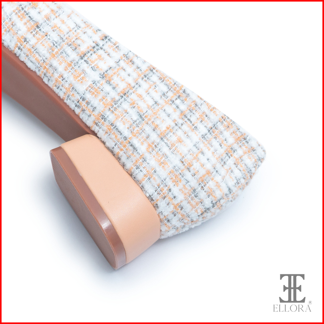 Ellora Eg 322-98 Sepatu Pantofel Wanita Hak Chunky Heels 2.5cm Bahan Tweed