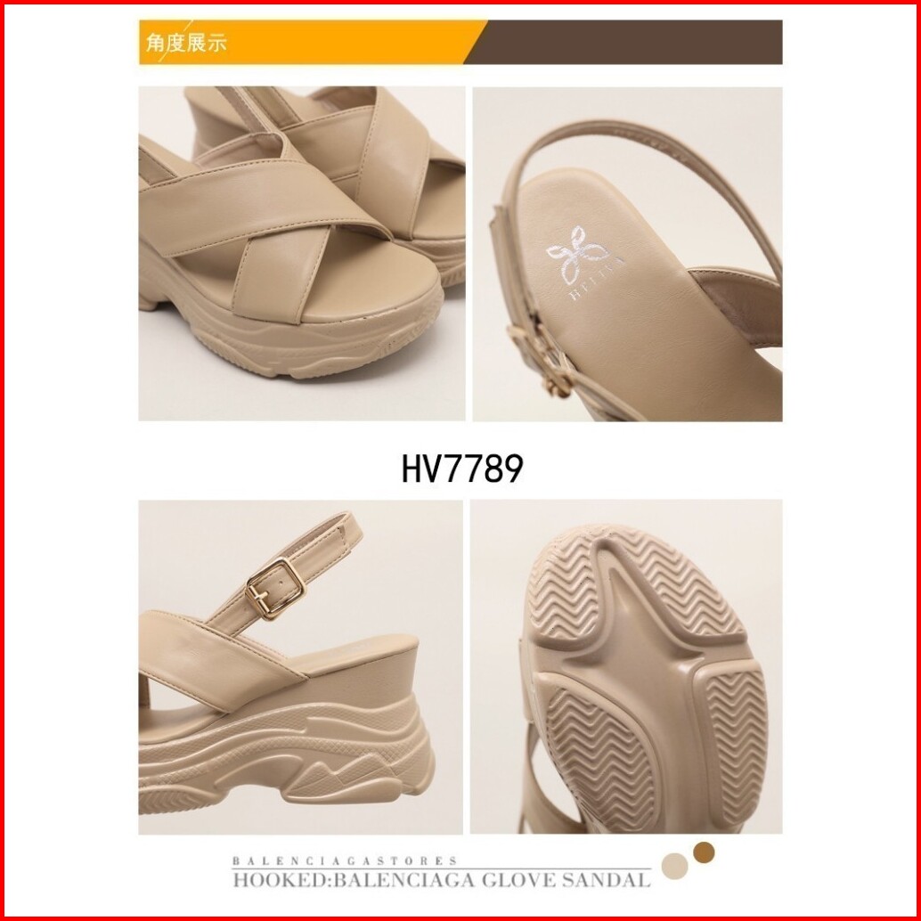 Heliva Kelly Sepatu Wedges Wanita Hak Tebal 8cm Tali Silang Sling Back Hv7789
