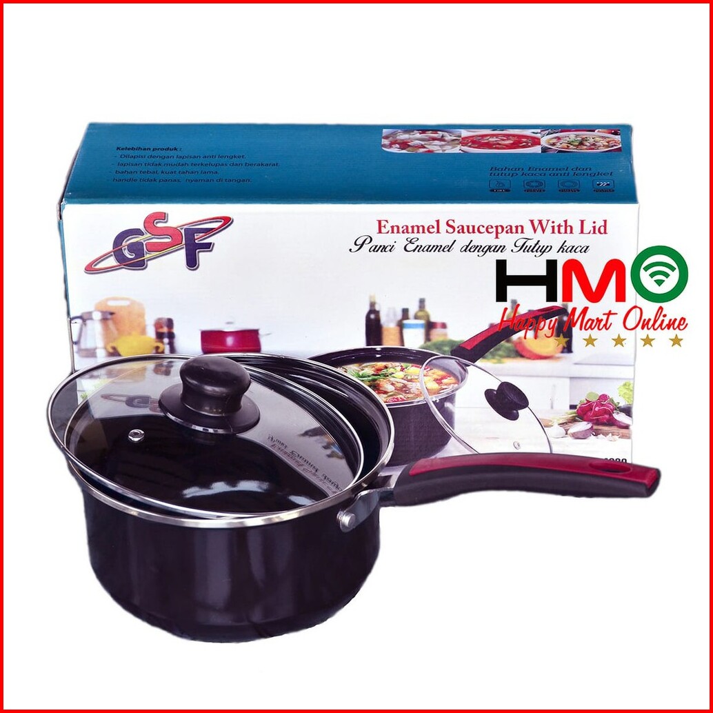 Panci Susu Tutup Kaca Sauce Pan Panci Gagang Panjang Gsf Lapisan Enamel Gsf 4020 Gsf-4020 Gsf402