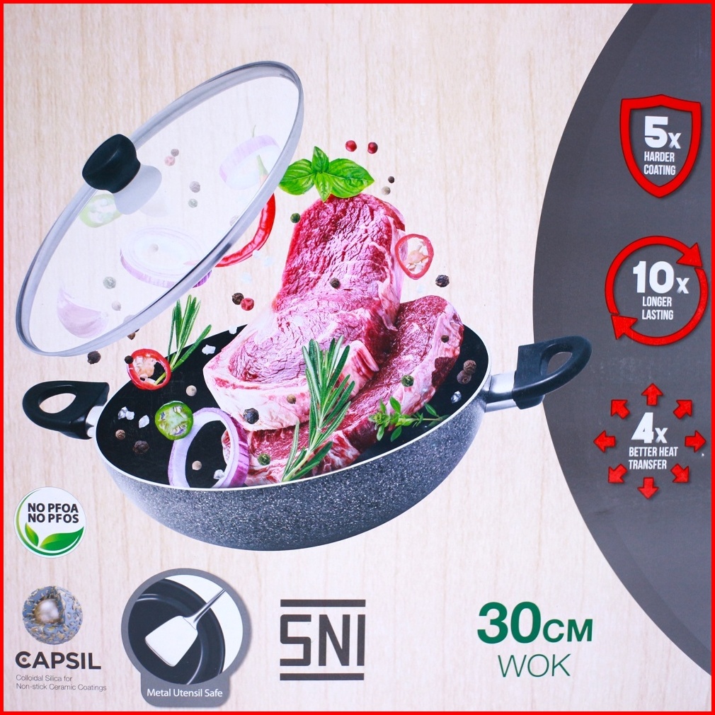 Khusus Maxim Neostone Wok 30 Cm Tutup Kaca Penggorengan Jumbo Anti Lengket Anti Gores