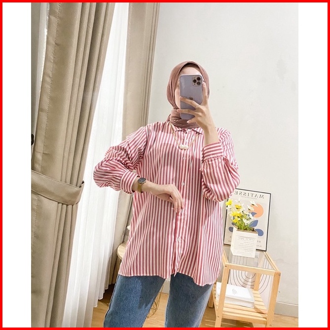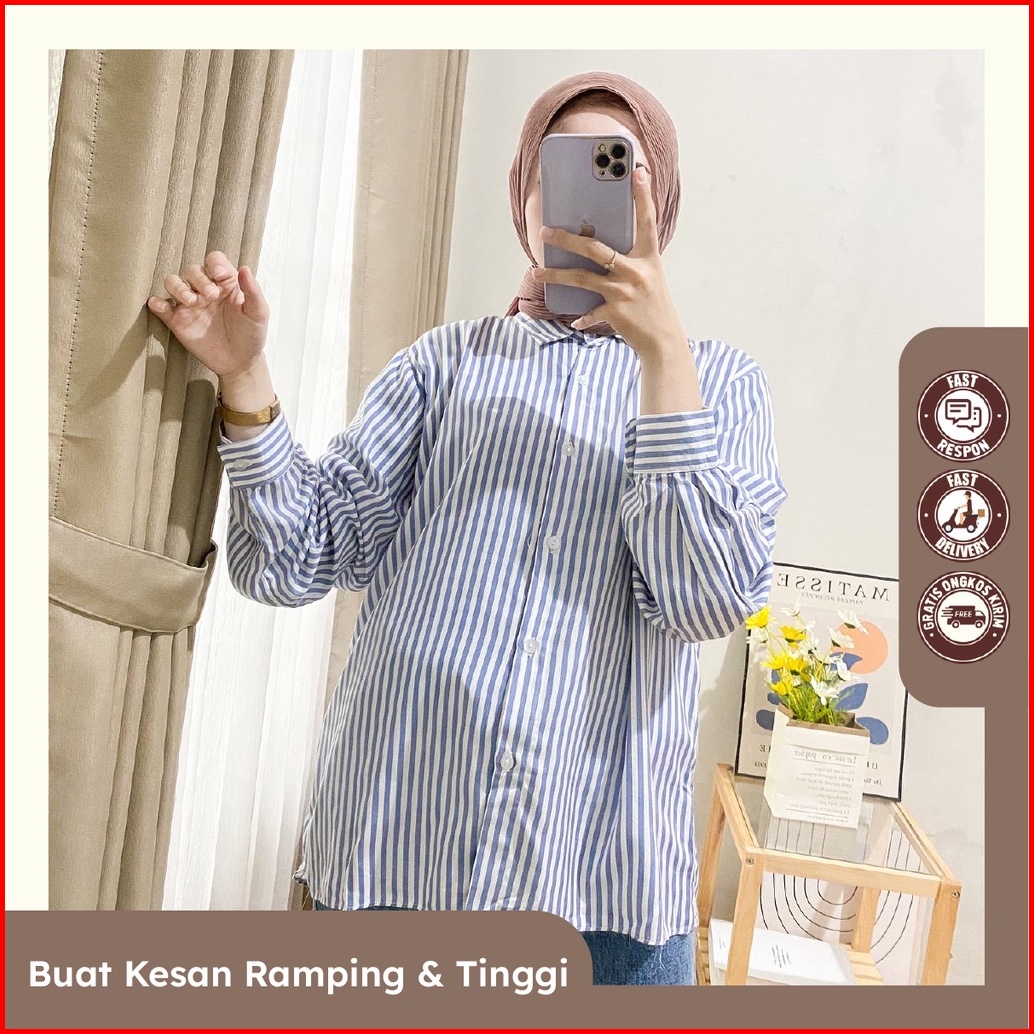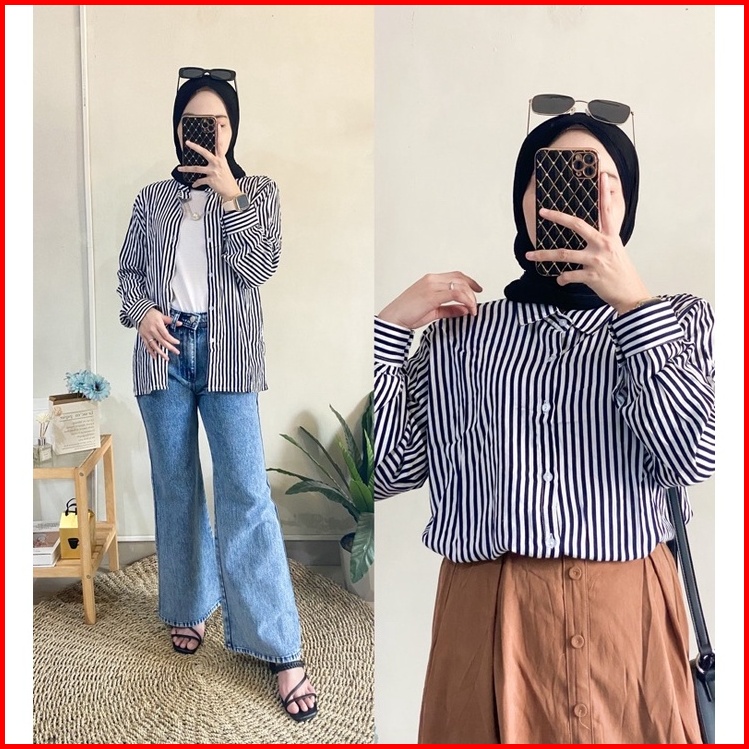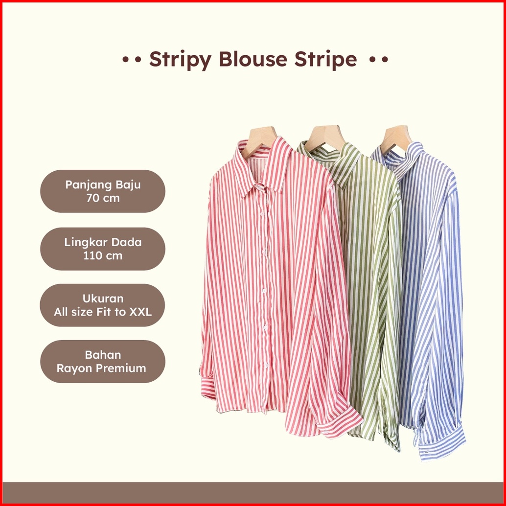Stripy Blouse Stripe Shirt Pakaian Baju Atasan Kemeja Wanita Busui Friendly Bahan Premium By Janietyeeofficial