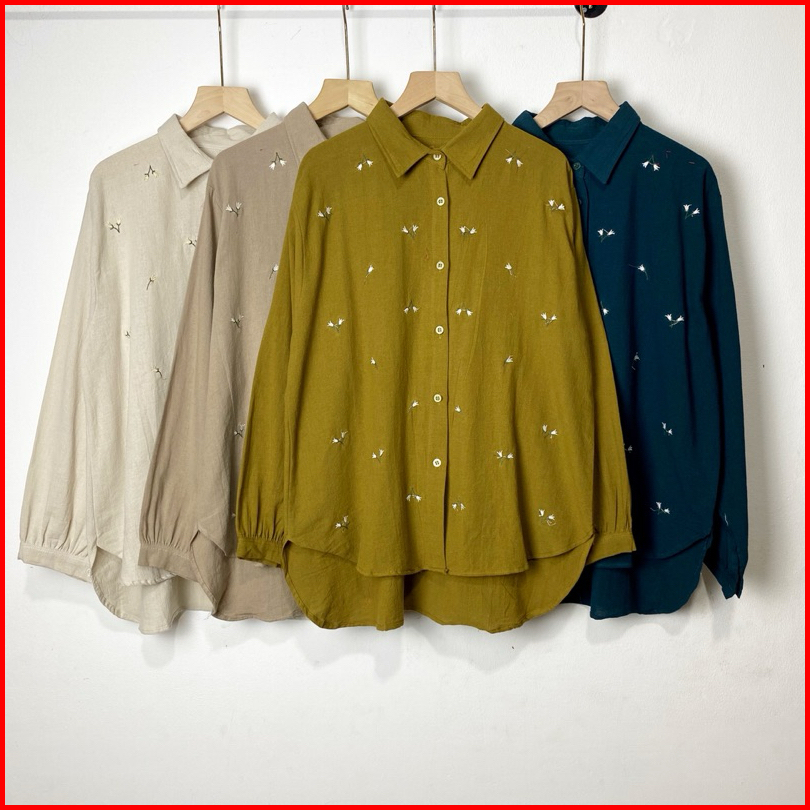 Nura Blouse Linen Bordir Bunga Ld 110cm