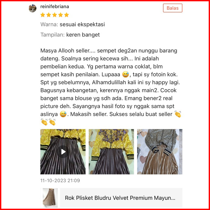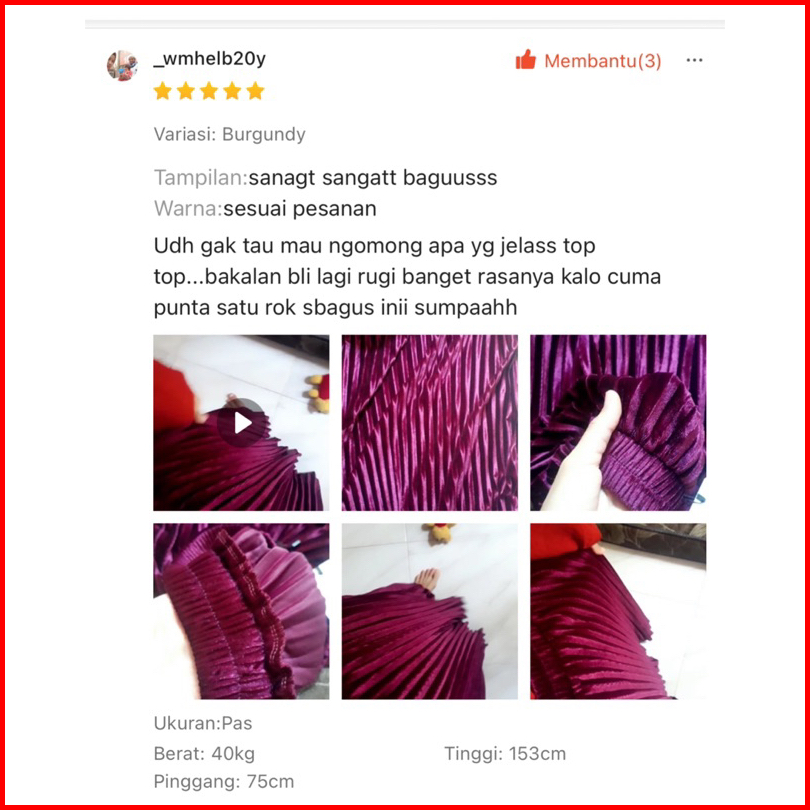 Rok Plisket Bludru Velvet Premium Mayung Jumbo