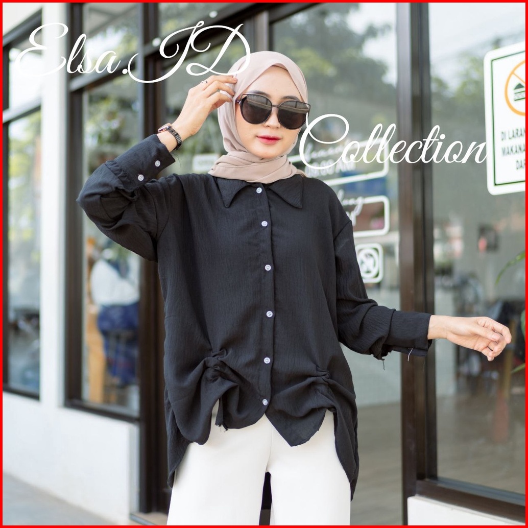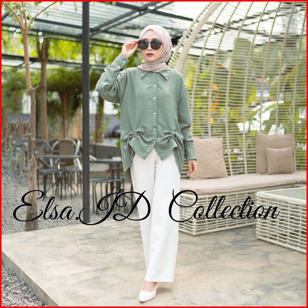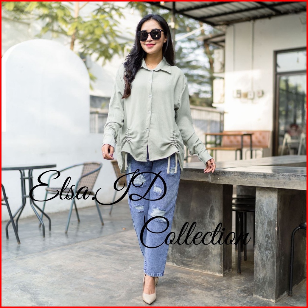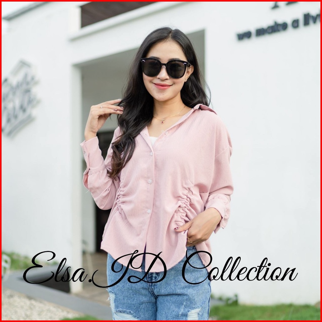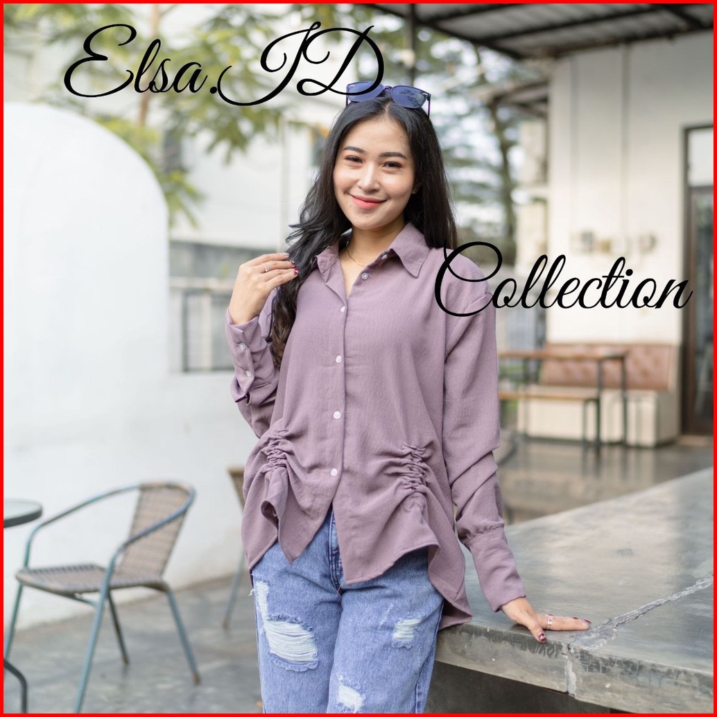 Elsa Ruched Shirt - Kemeja Cringkel Serut Wanita Oversize - Atasan Wanita Lengan Panjang