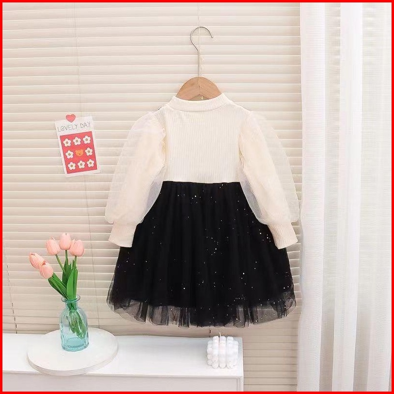 Kf Cat Dress Anak Perempuan Gaun Tutu Tile Lengan Panjang Pita Rajut Elegan Style Usia 1-4 Tahun