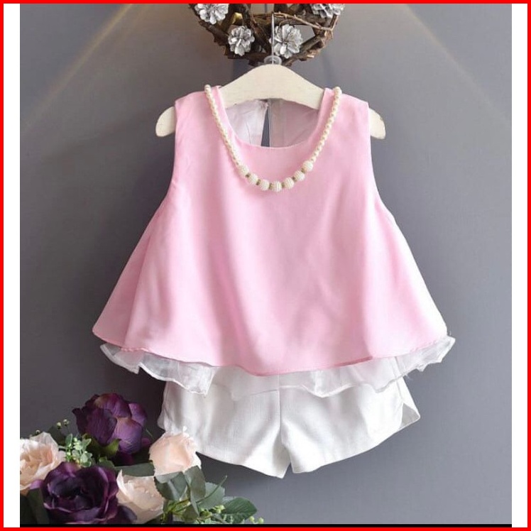 Bayi - 4 Tahun Setelan Chan Mi - Set Premium Gaya Elegant Korea-baju Anak Lengan Pendek Zr Vedia
