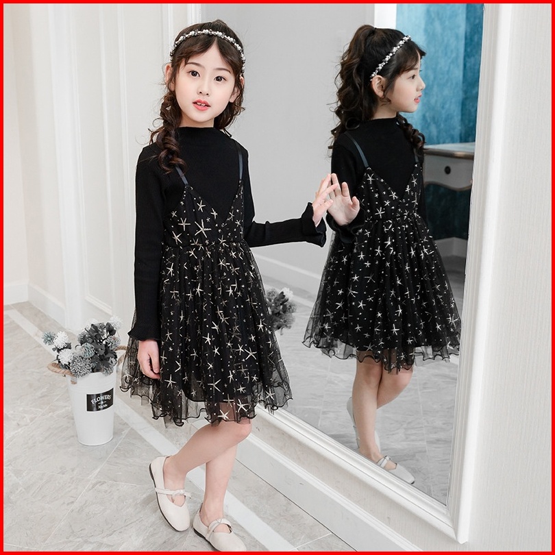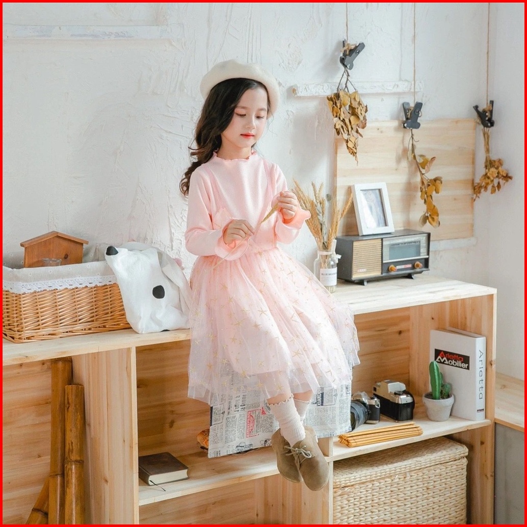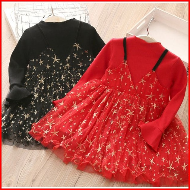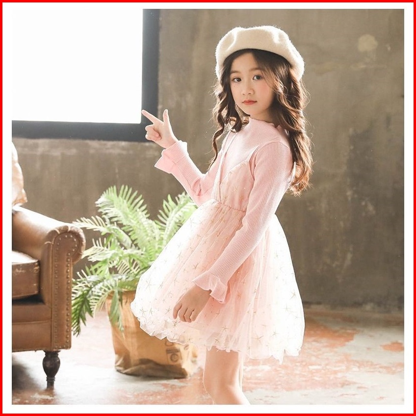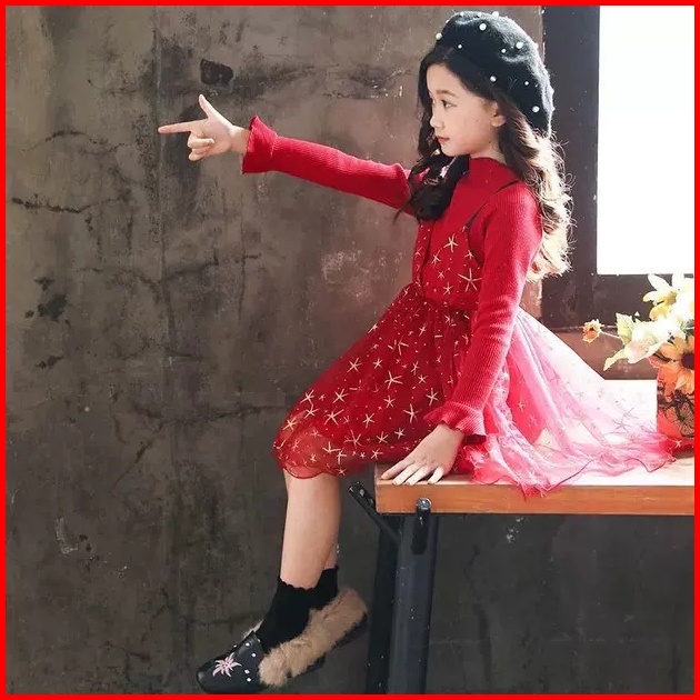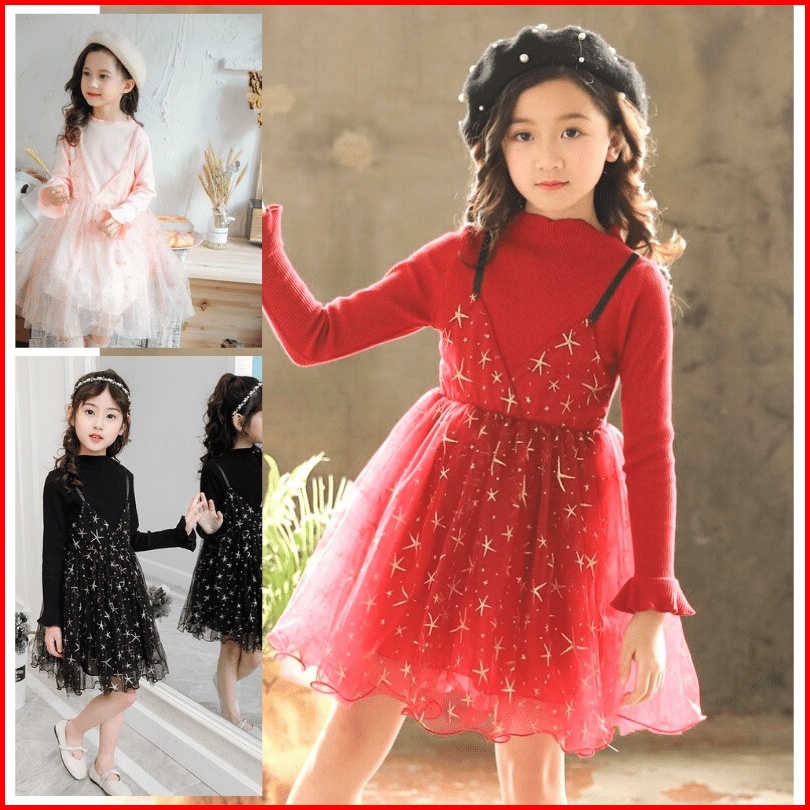 Hana 3-8 Tahun Dress Overall Knit Korean Style Gaun Pesta Natal Anak Perempuan Pesta Zr Vedia