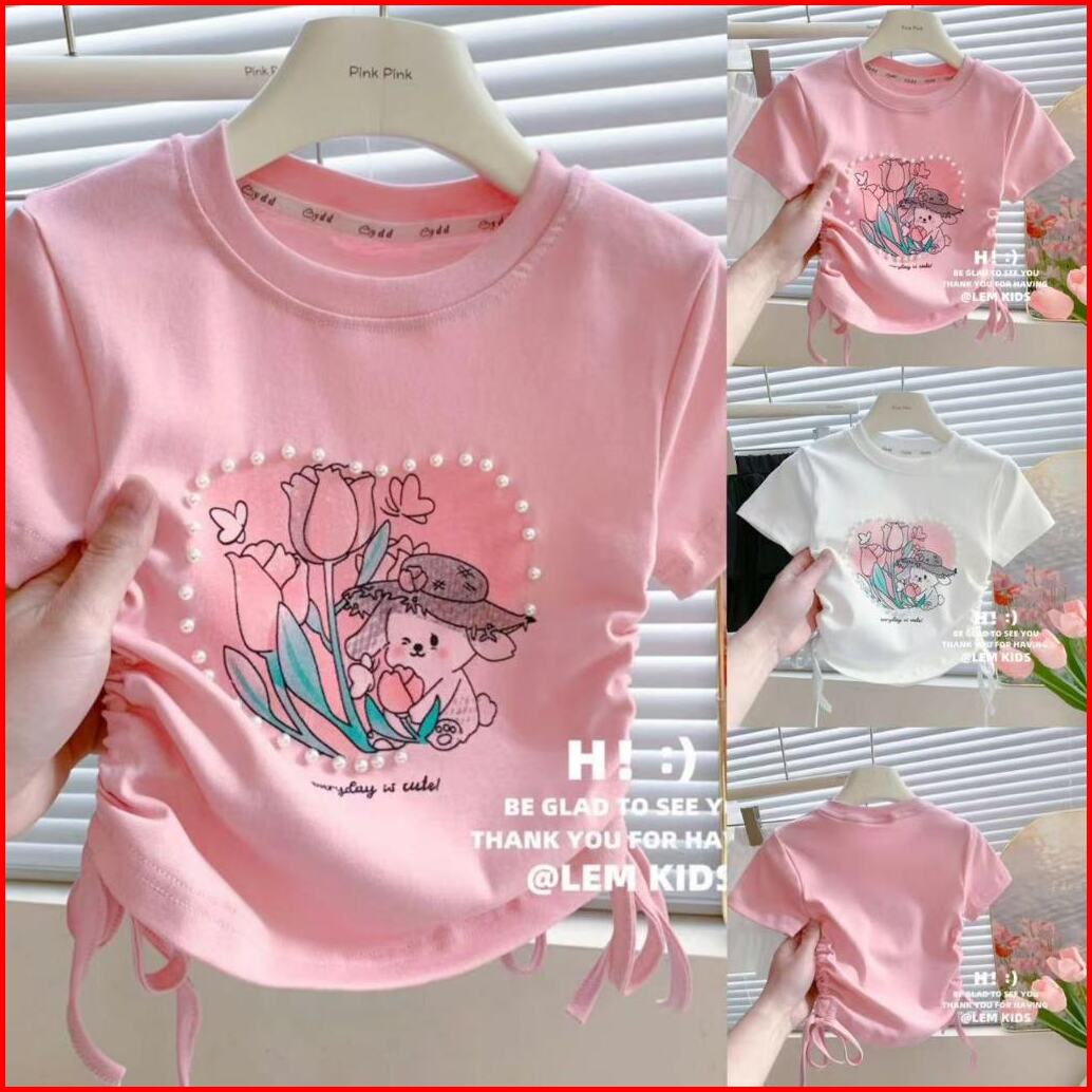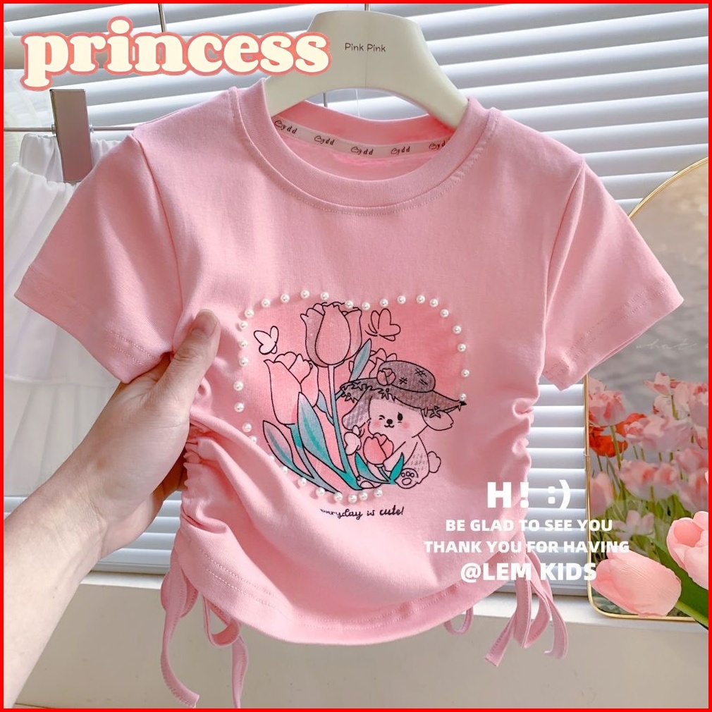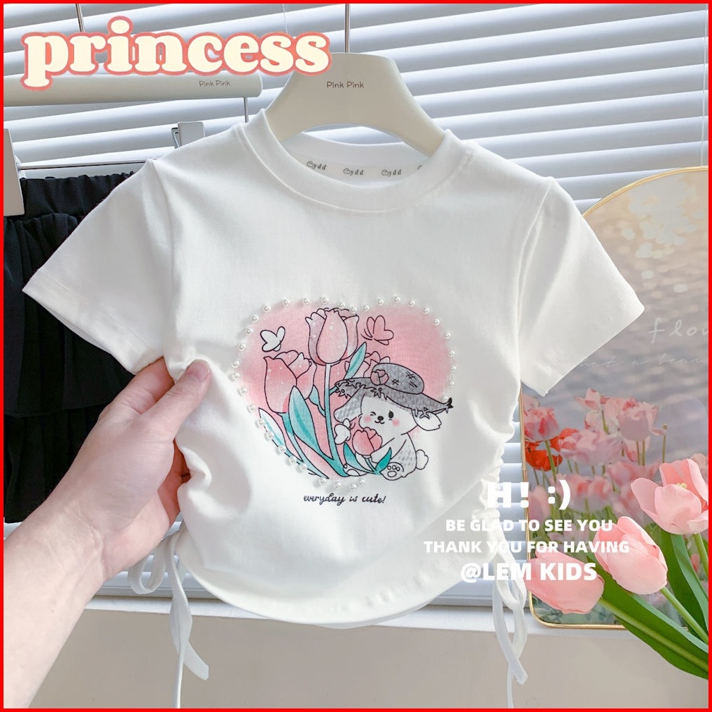 Princess Kesli 2-11 Tahun Kaos Lengan Pendek Mutiara Jantung Kartun Manis Atasan Baju Anak Perempuan