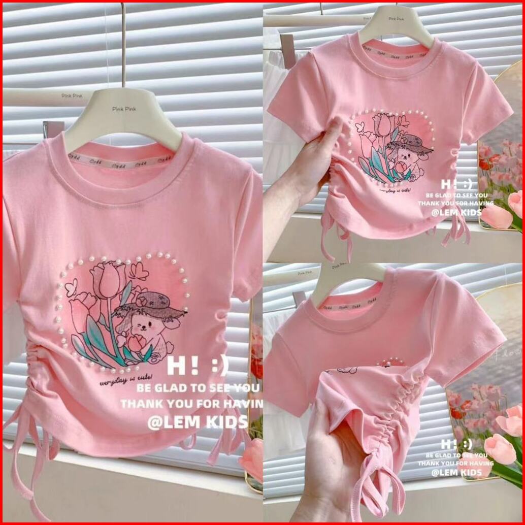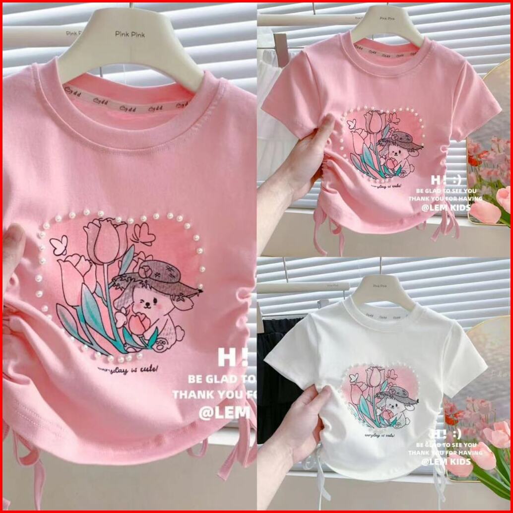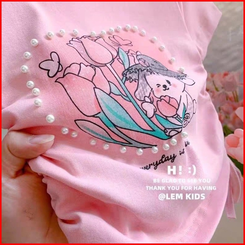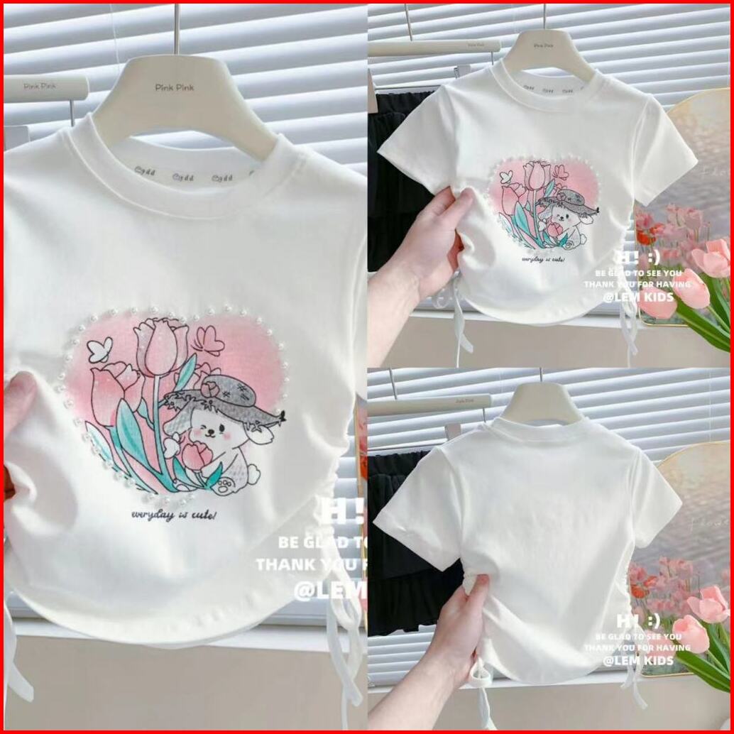 Princess Kesli 2-11 Tahun Kaos Lengan Pendek Mutiara Jantung Kartun Manis Atasan Baju Anak Perempuan