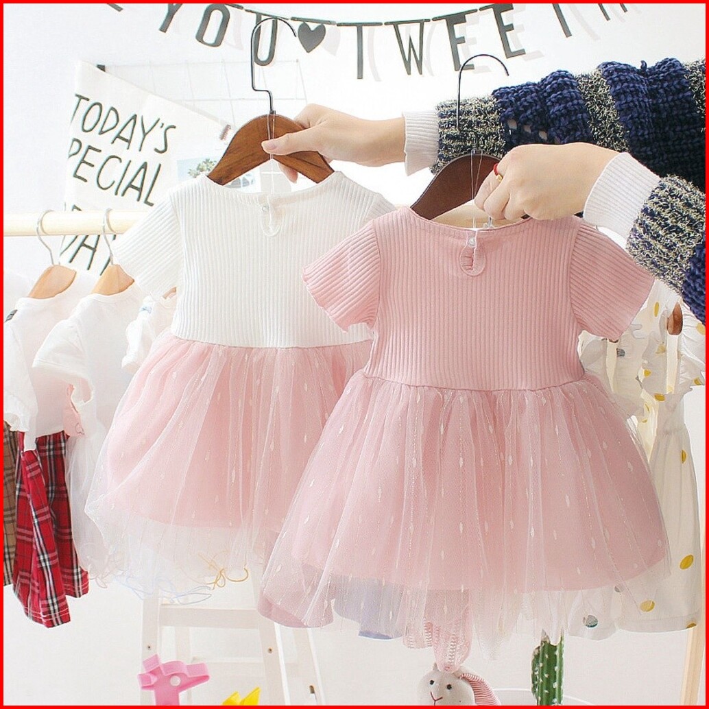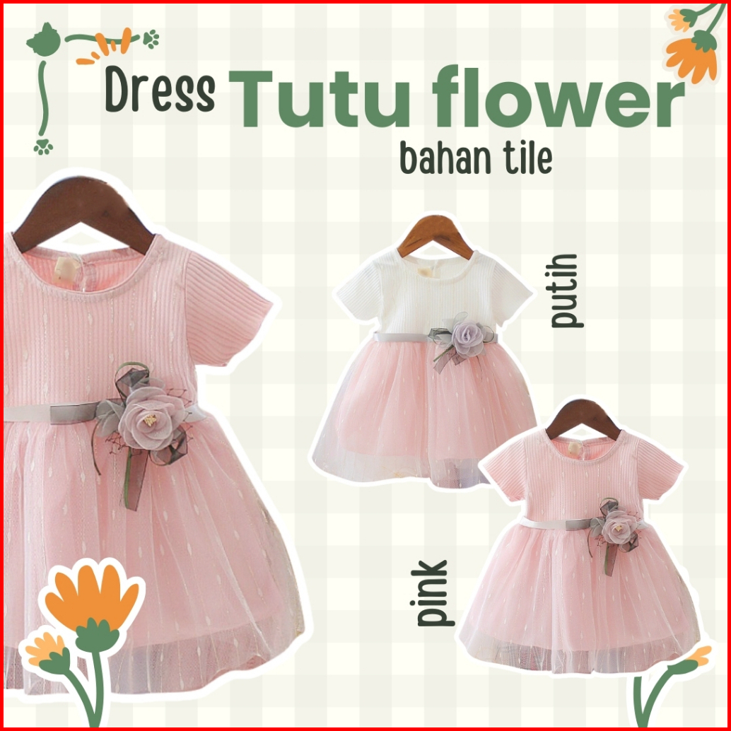 Little Dream 0-2 Tahun Dress Tutu Flowers Kancing Anak Perempuan Baju Princess Bahan Tile Sudah Dilapisi Furing