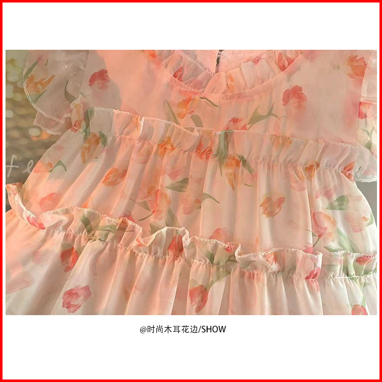 Cacoa 1-9 Tahun Dress Anak Perempuan Fashion Peachy Flower Gaun Pesta