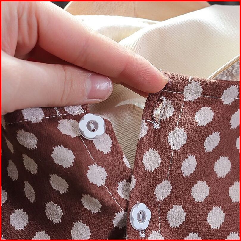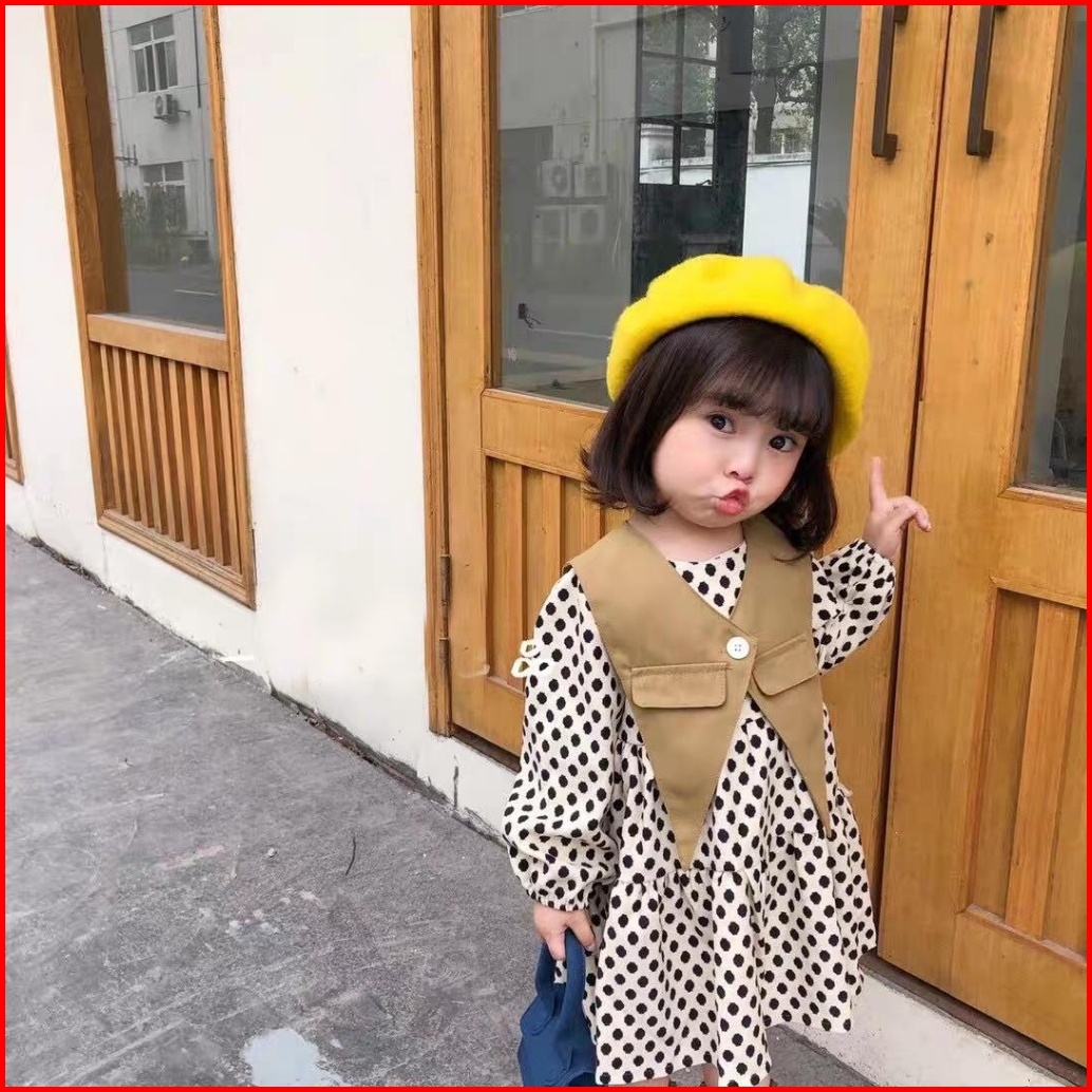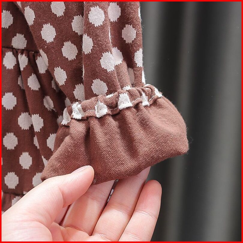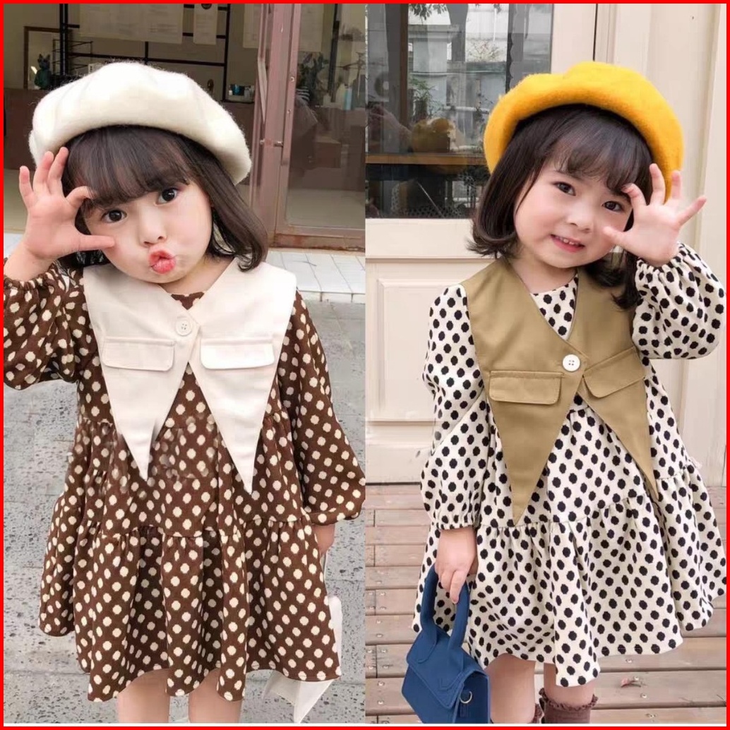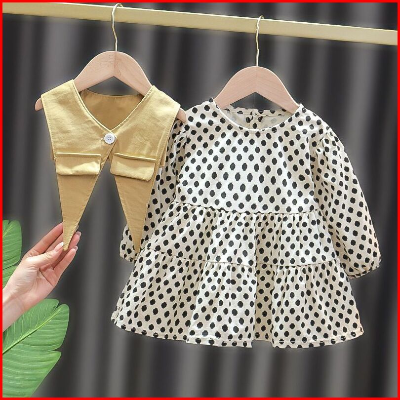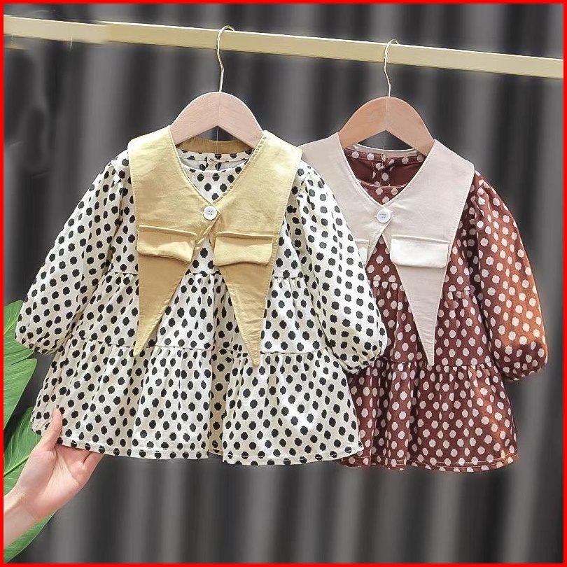 Kf Cat Dress Gaun Anak Perempuan Lengan Panjang Bahan Katun Premium Motif Polkadot O-neck Kancing Korea Style Usia 1-4 T