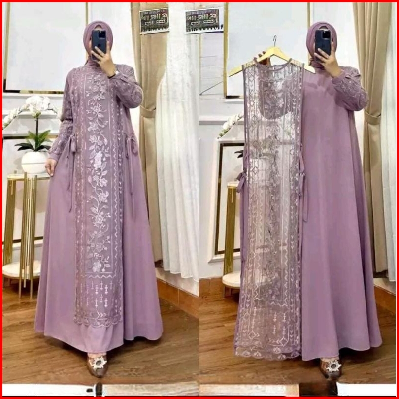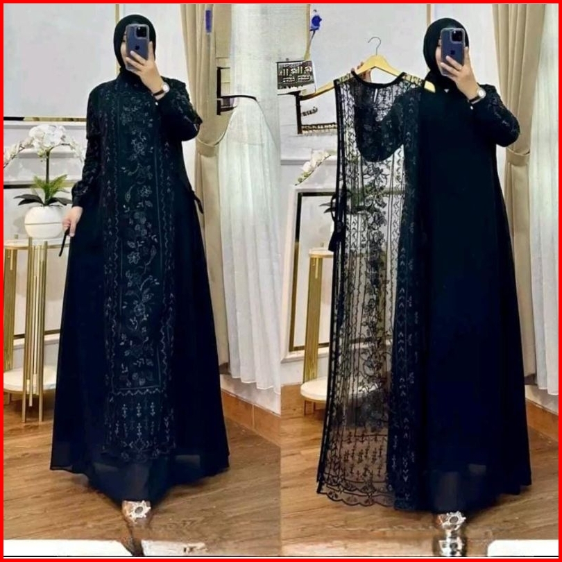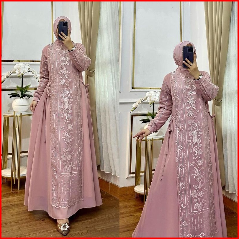 Zafier Clothing Mudra Dress Brukat Wanita Premium Brukat Outer Terpisah Bahan Ceruty Gamis Brukat Wanita Kekinian Gamis