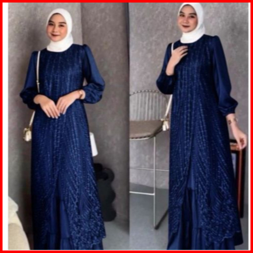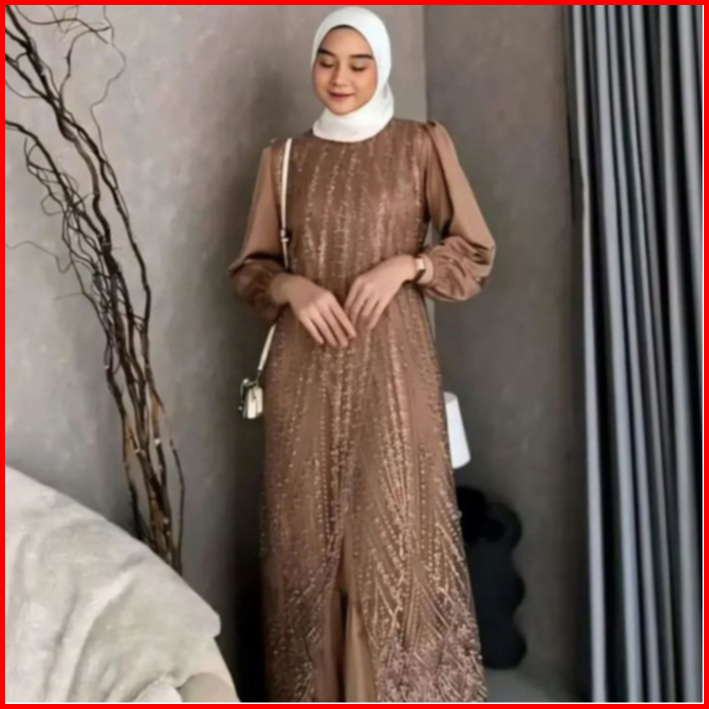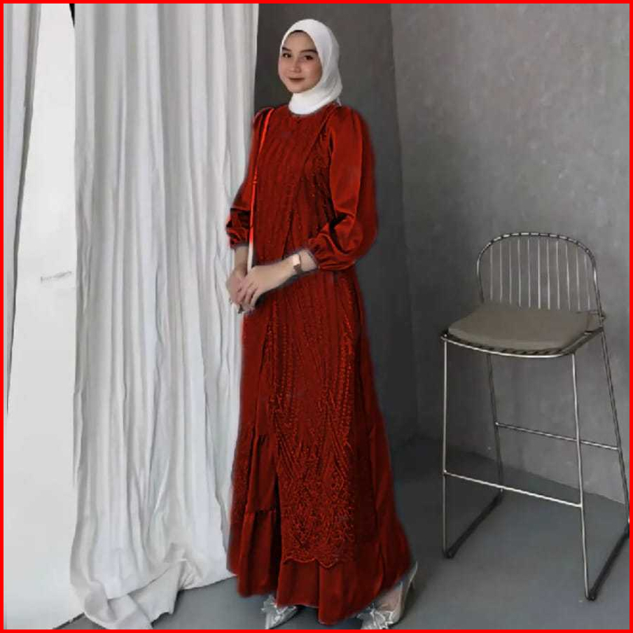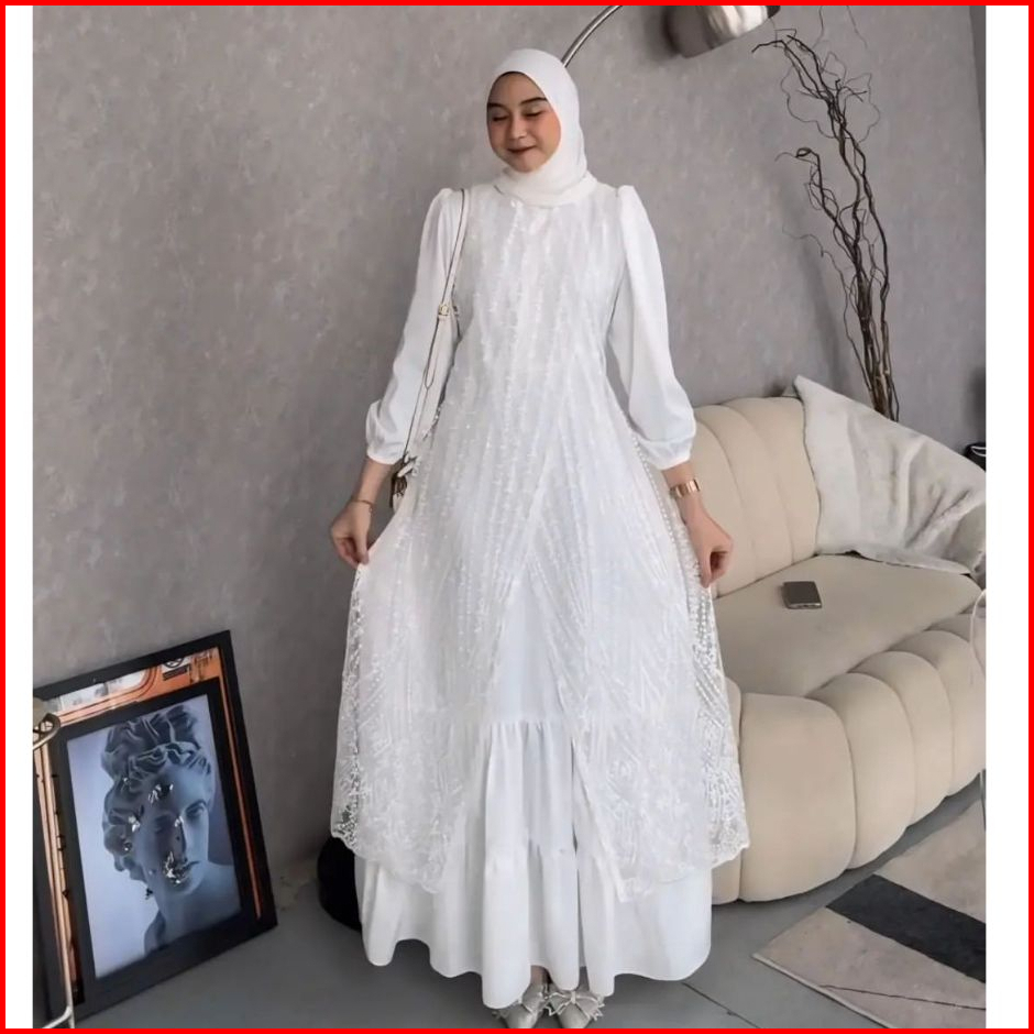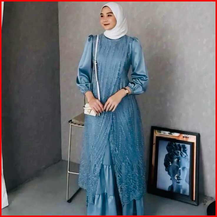 Fuji Dress Pesta Brukat Tille Premium Lebaran Gamis Pesta Mewah Bahan Maxmara Mix Brokat Timbul