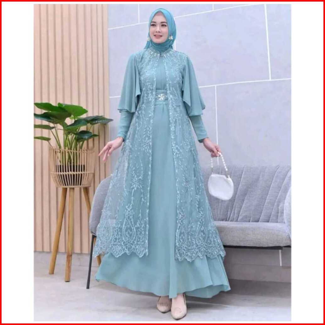 Dress Clarisa Inner Outer Brukat Terbaru 2024 Free Belt Gamis Pesta Brukat Kondangan Jumbo Ld 120