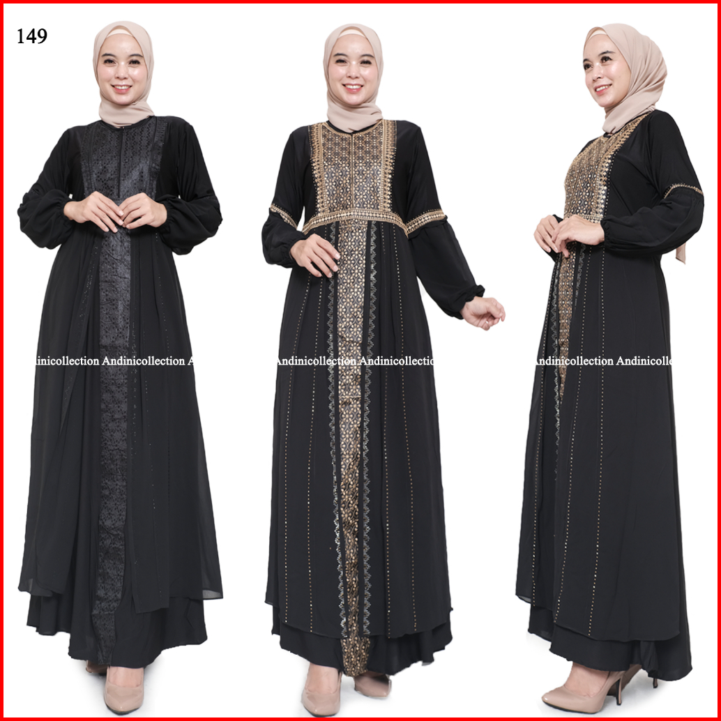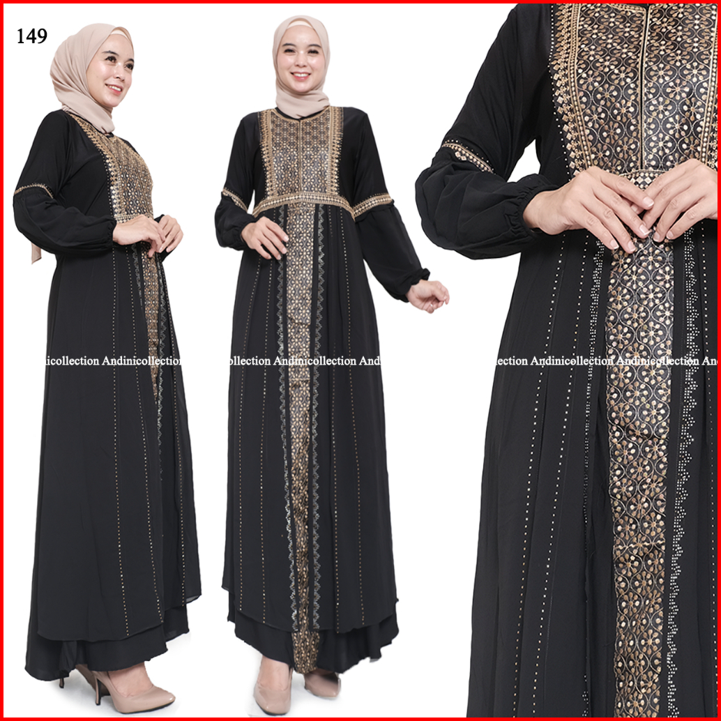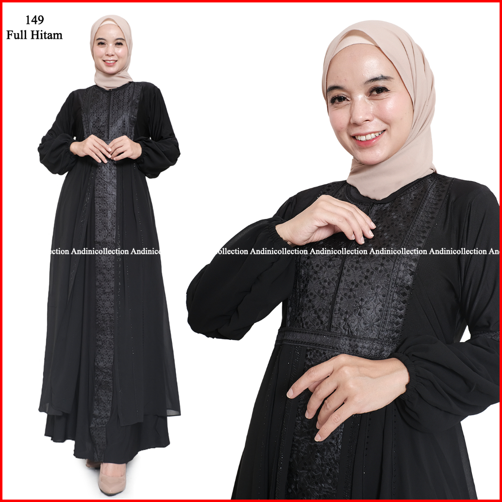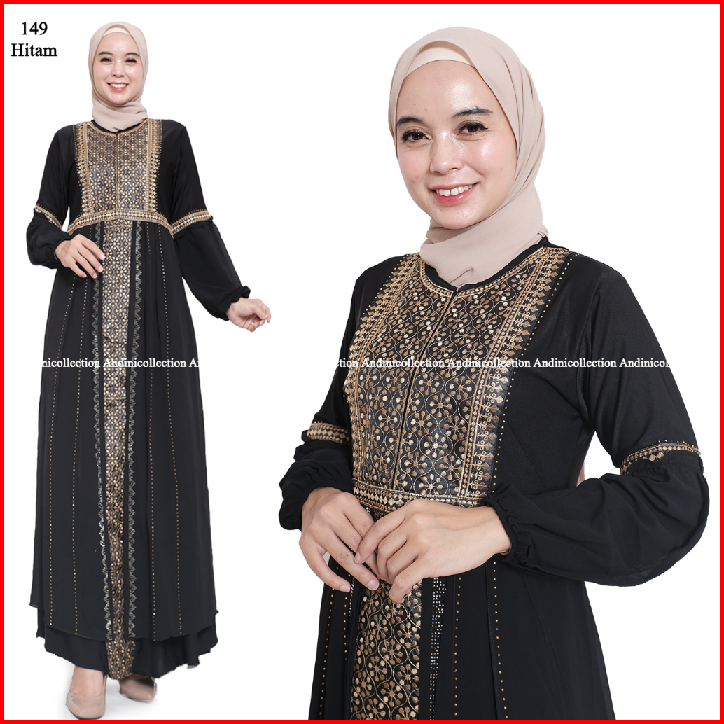 Andinicollection Abaya Turkey 149 Amarta Hitam Putih Dewasa Muslim Bordir Dan Payet Mewah