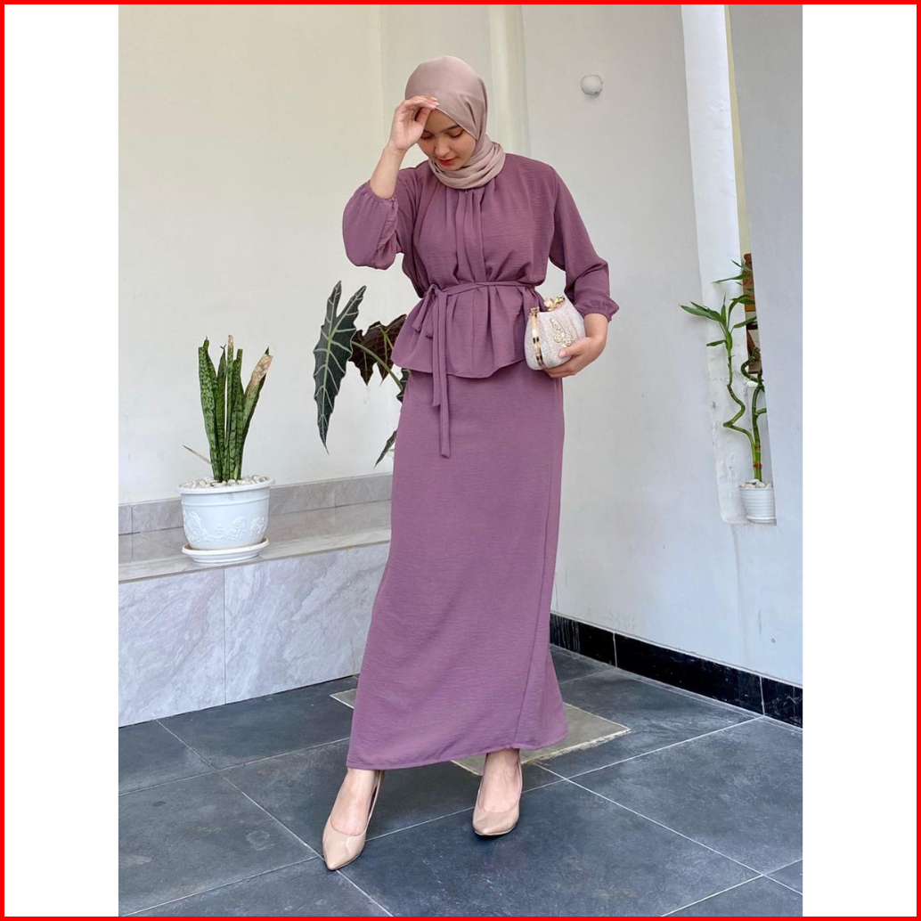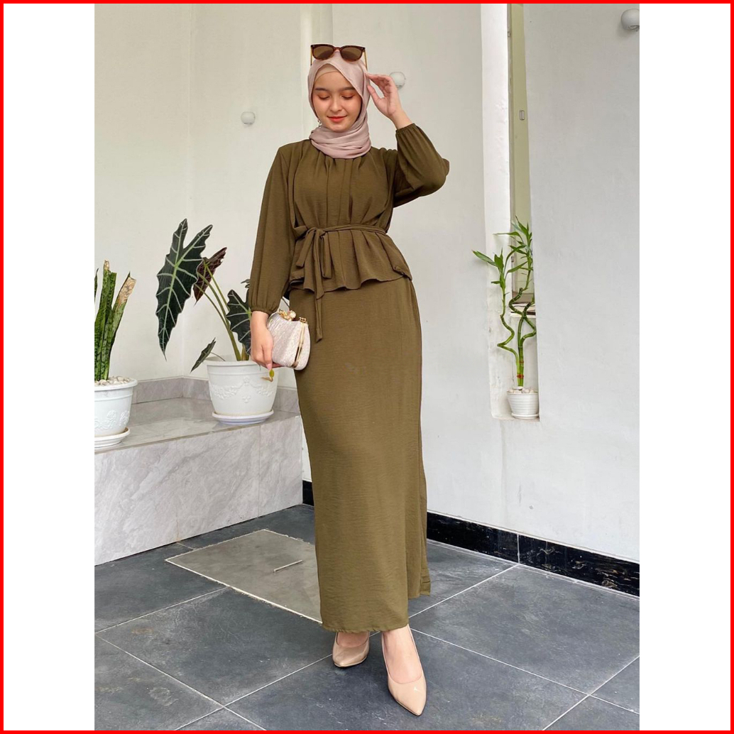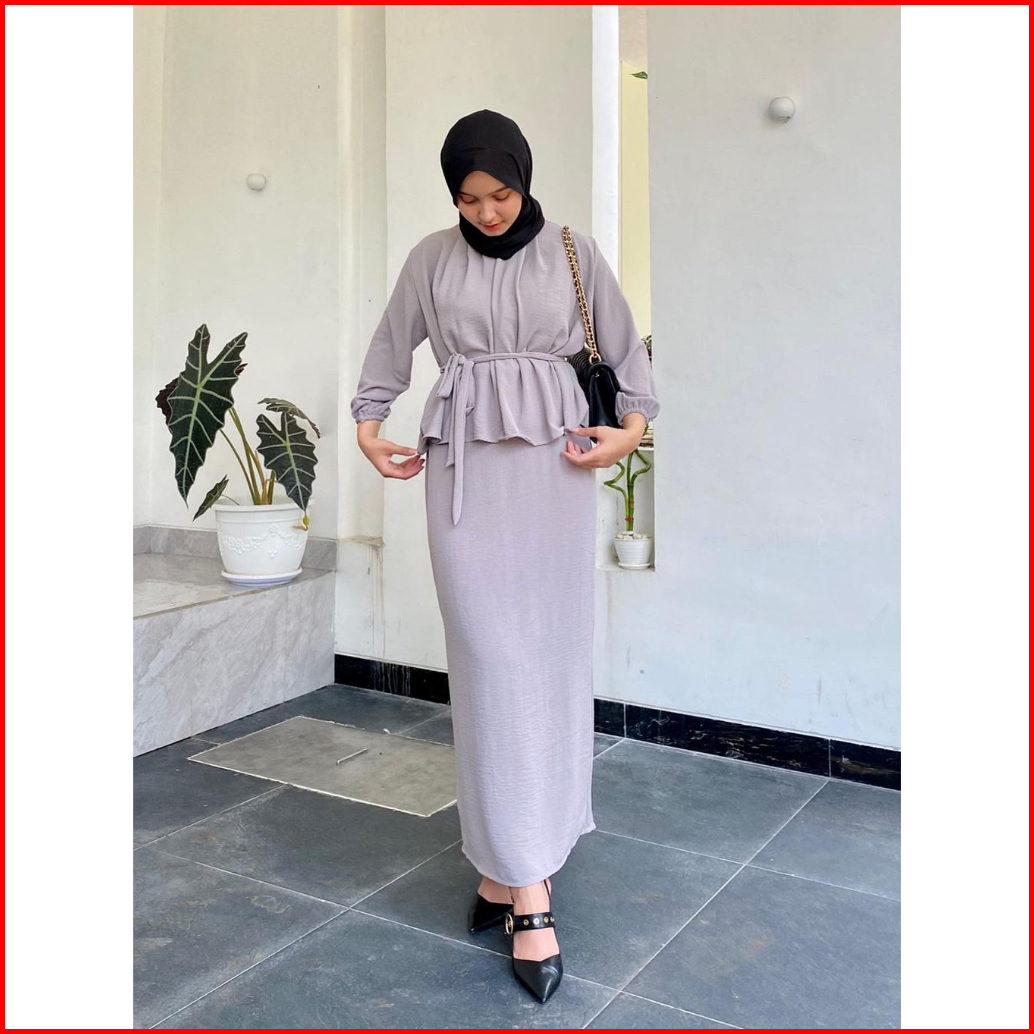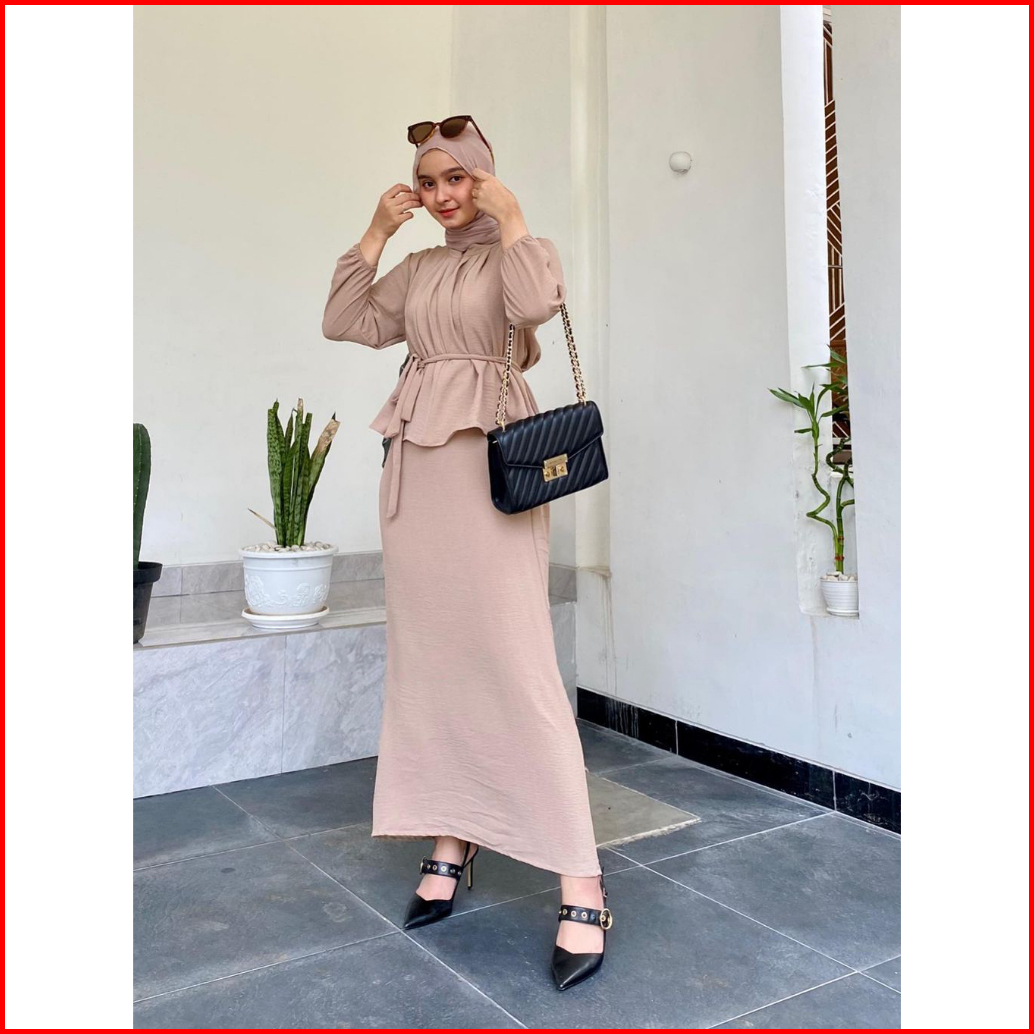 Setelan Crinkle Oneset Hijab Pakaian Wanita Baju Set Busui Friendly Dini Set Cringkle Airflow Outfit Remaja Setelan Dres