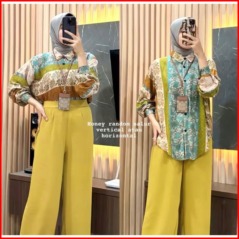 Luxury One Set Pakaian Wanita Terbaru Satu Set Baju Dan Celana Setelan Rayon Mix Crinkel Pakian Wanita Baju Dan Celana B