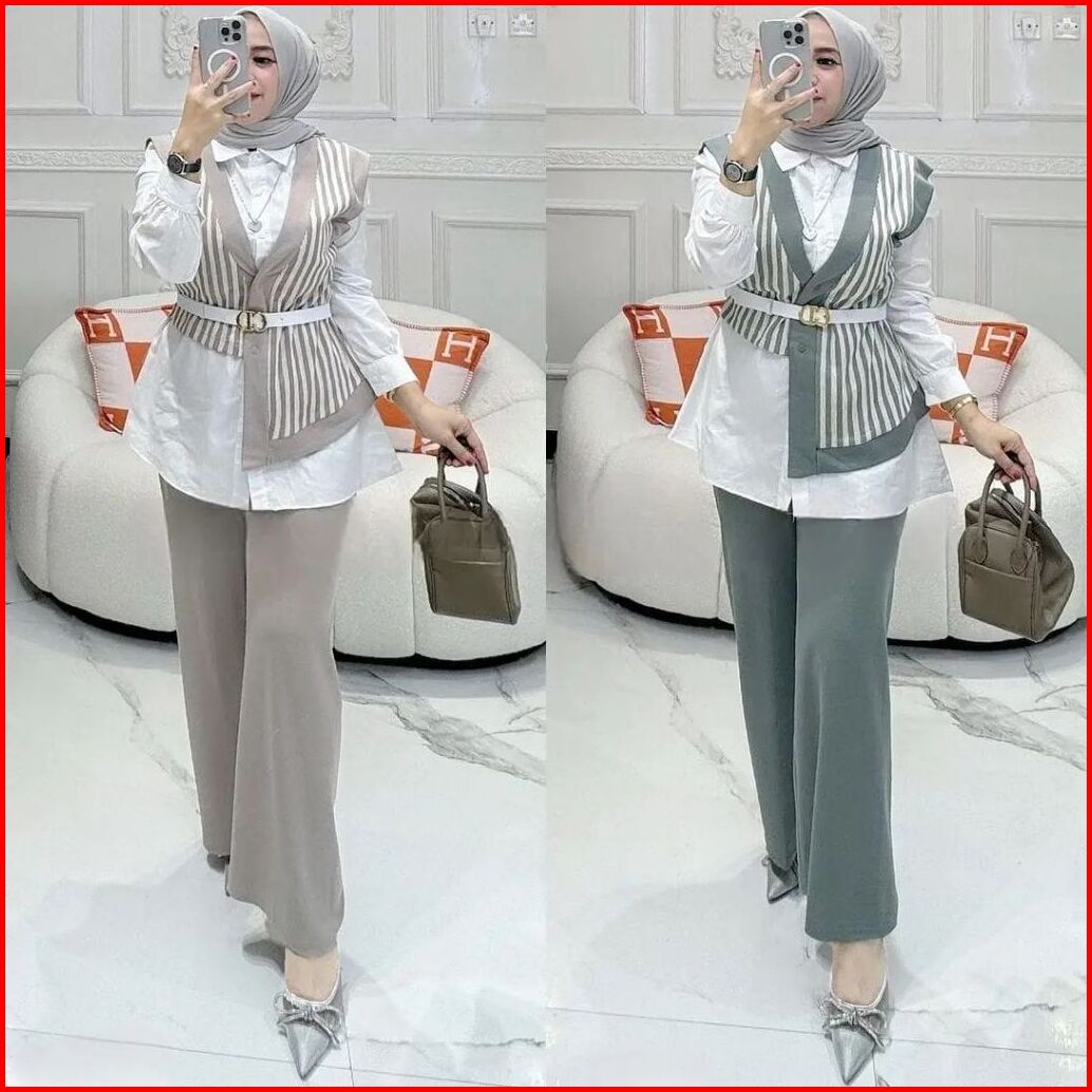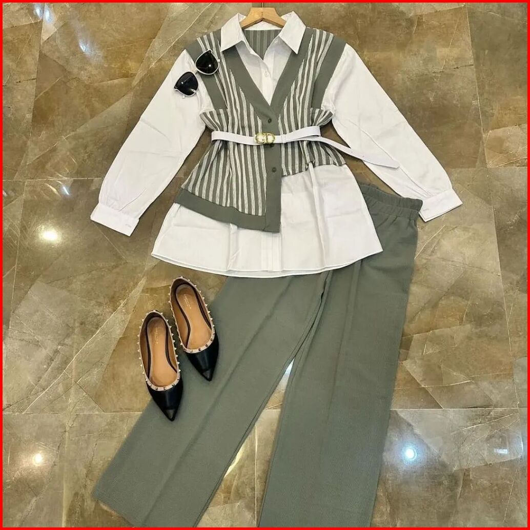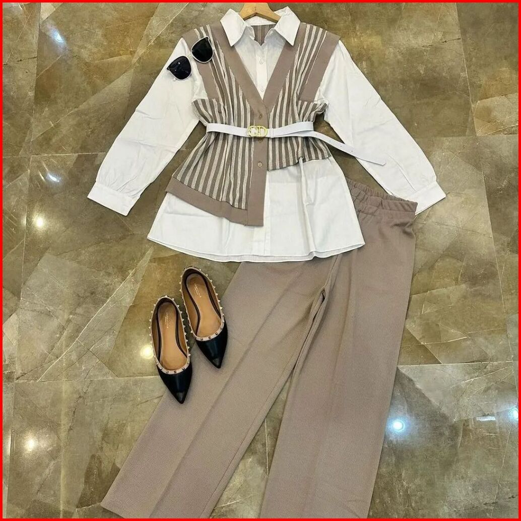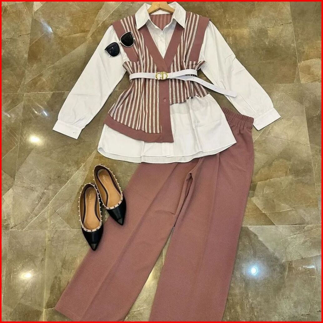 Dena One Set 2in1 Bahan Kaduroy Knite Mix Toyobo Setelan Wanita Kekinian Set Blouse Dan Celana Fashion Muslim Wanita Elf