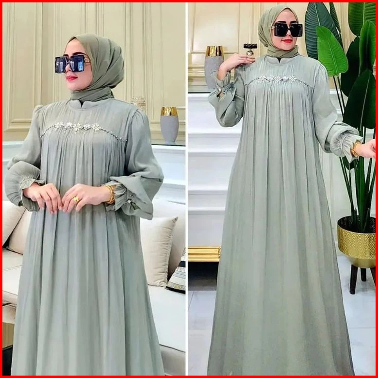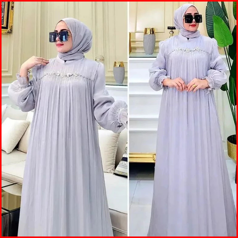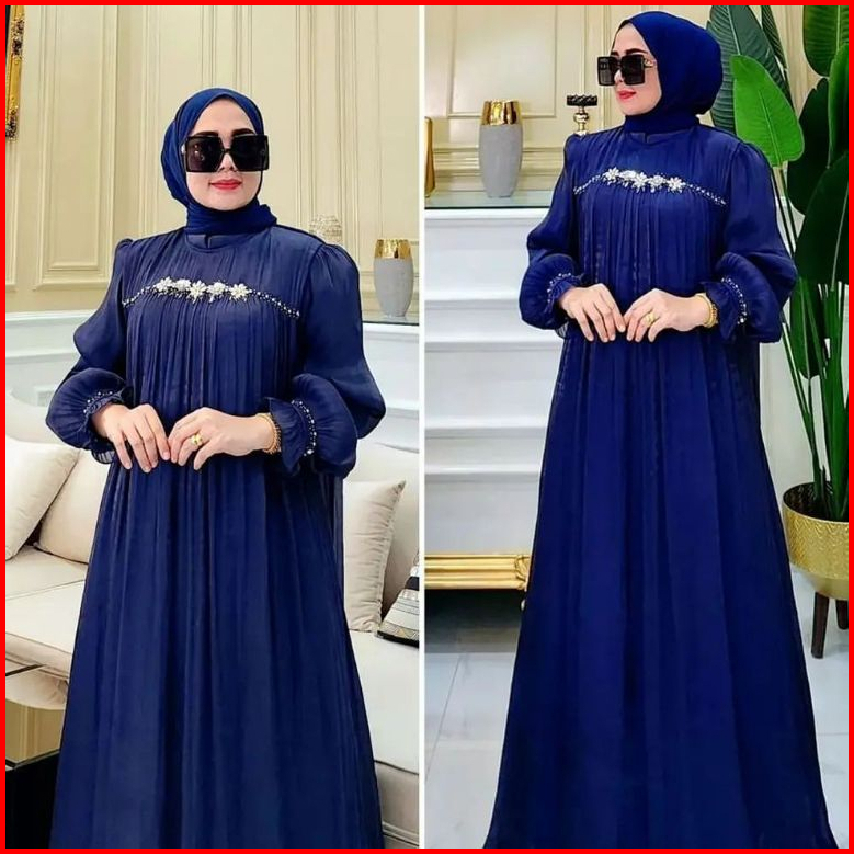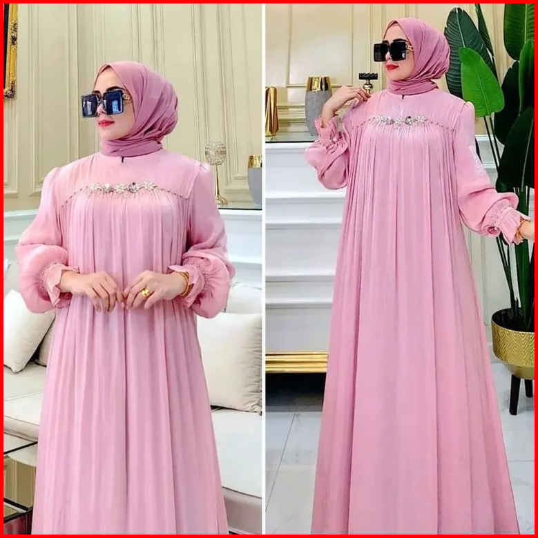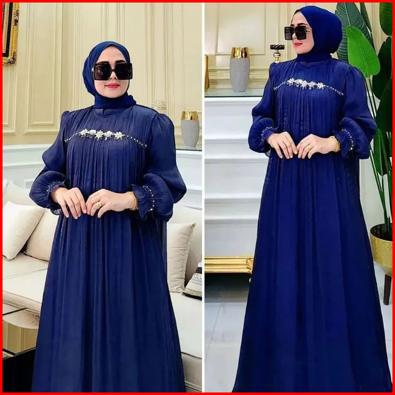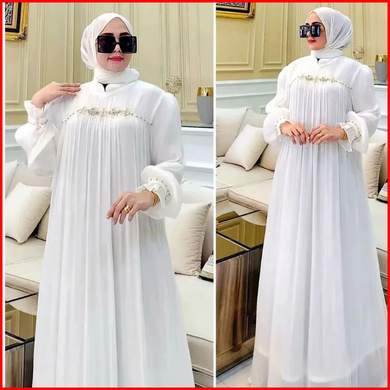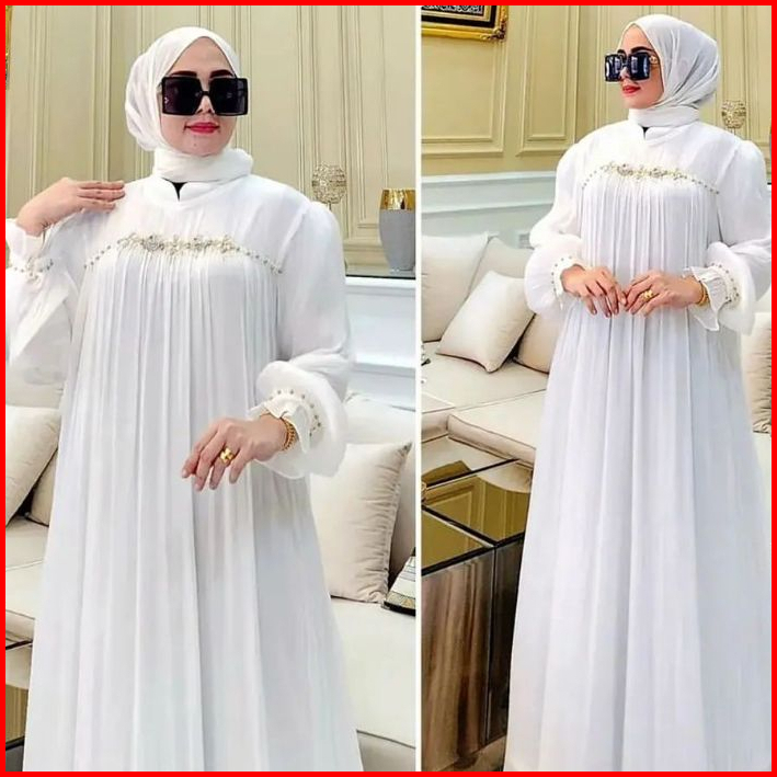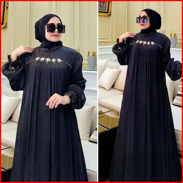 Gamis Pesta Wanita Terbaru Mewah Payet Mutiara Ceruty Babydol Full Puring Dress Kondangan Elegan
