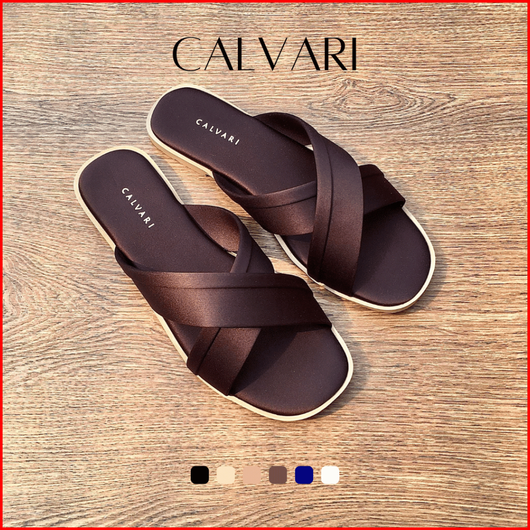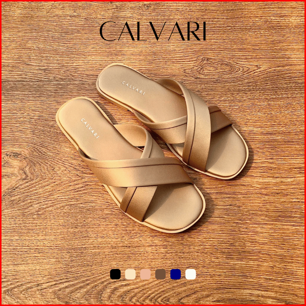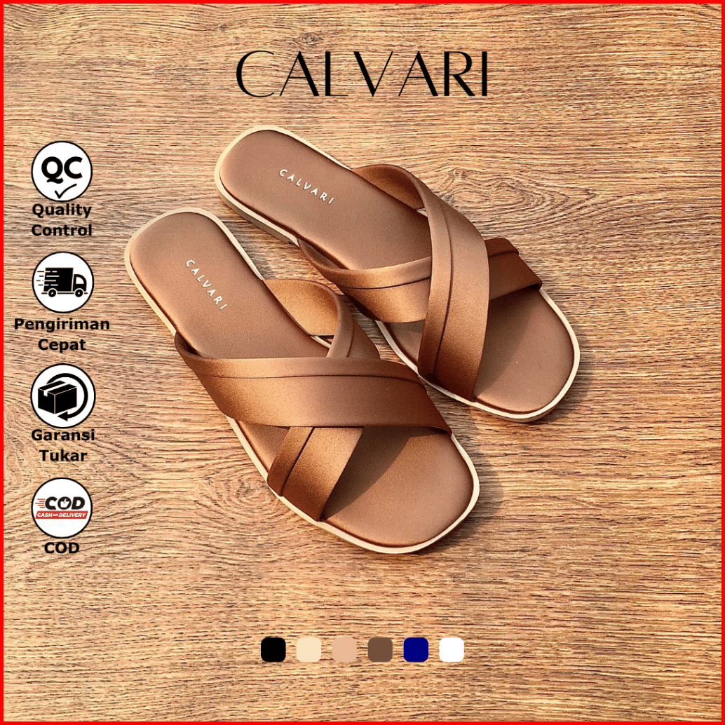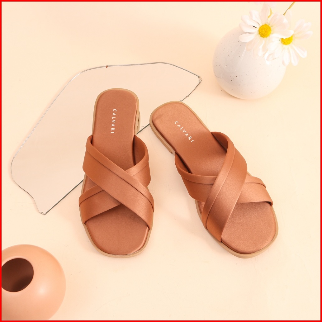 Calvari - Felicia Sandal Wanita Korea Teplek Casual Kekinian Size 36 - 40 Sendal Flat Cewek Kasual