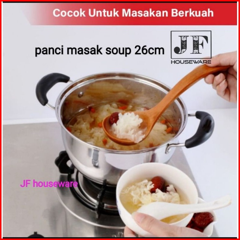 Panci Masak Soup Stainless Steel Tutup Kaca Saucepot