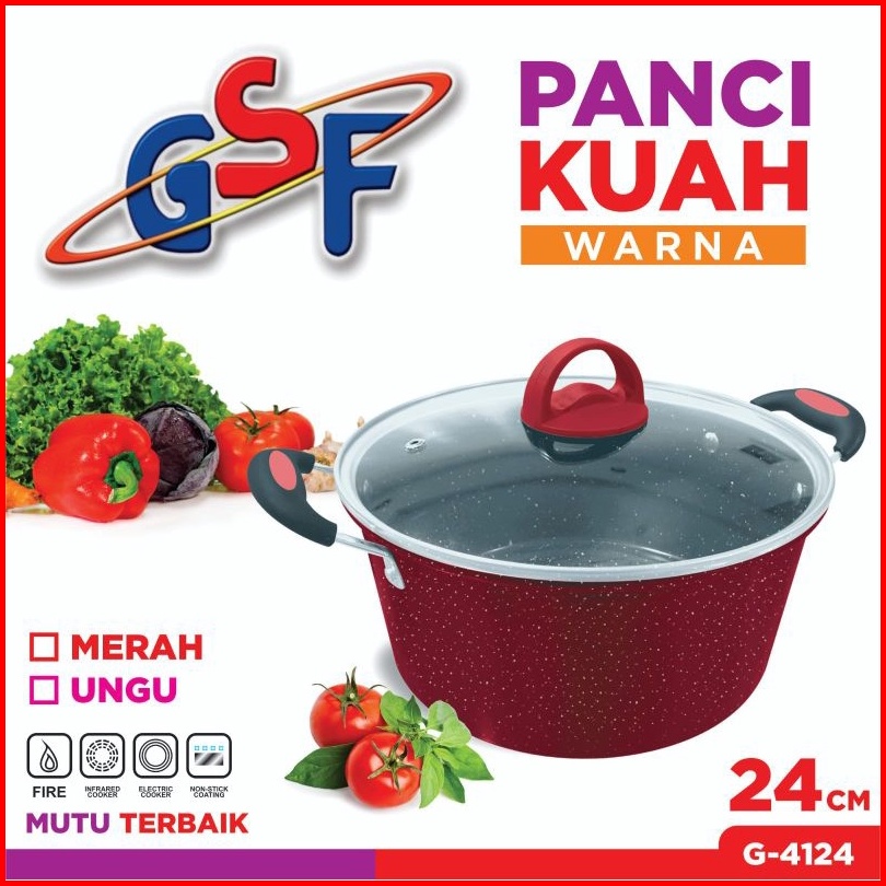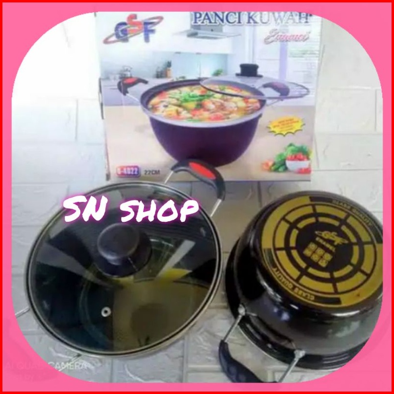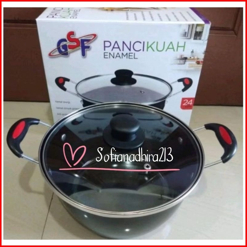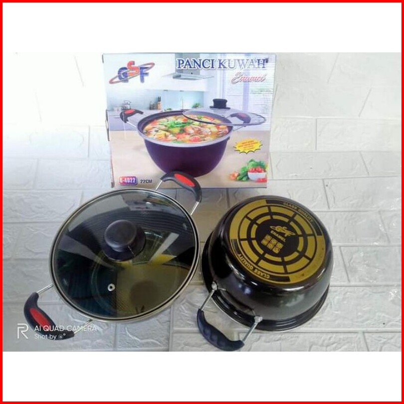 Panci Kuah Tutup Kaca Enamel Gsf 4024 24 Cm Anti Lengket Panci Serbaguna Gsf Anti Lengket