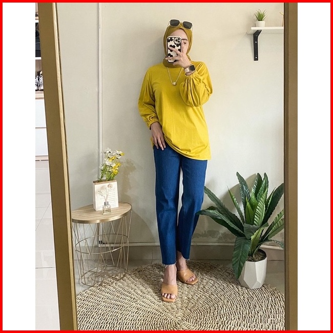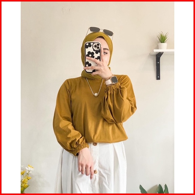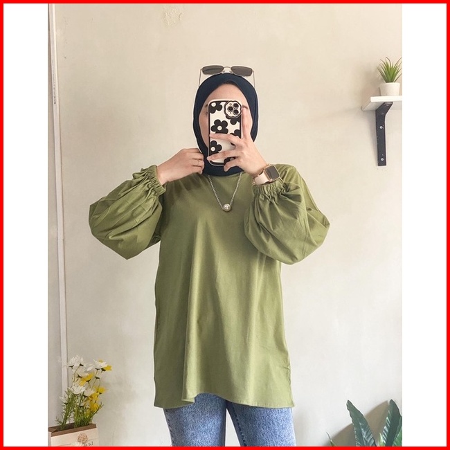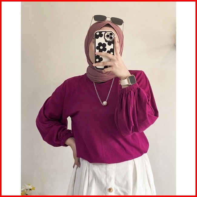 Puffy Blouse Kaos Polos Wanita Kekinian Katun Combed