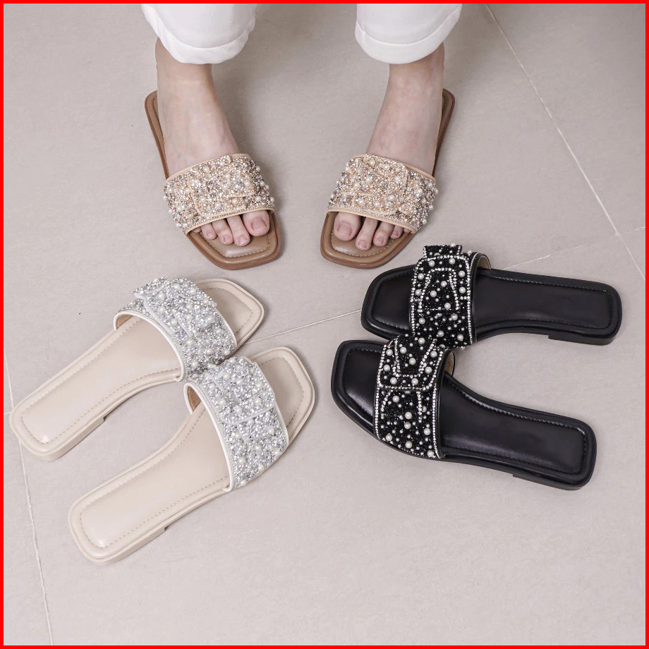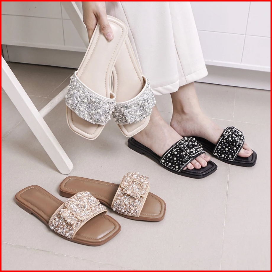 Luxelane Tyla Ready Sandal Wanita Teplek Casual Premium Sendal Selop Empuk Flat Warna Hitam Putih Coklat Korean Style El