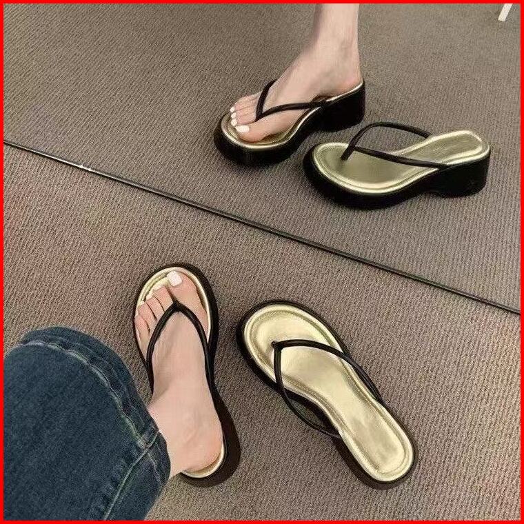 Luxelane Mia - Promo Ready Sandal Wedges Wanita Tinggi 5cm Warna Black Korean Style Dewasa Sepatu Remaja Shoes Kuliah Ke