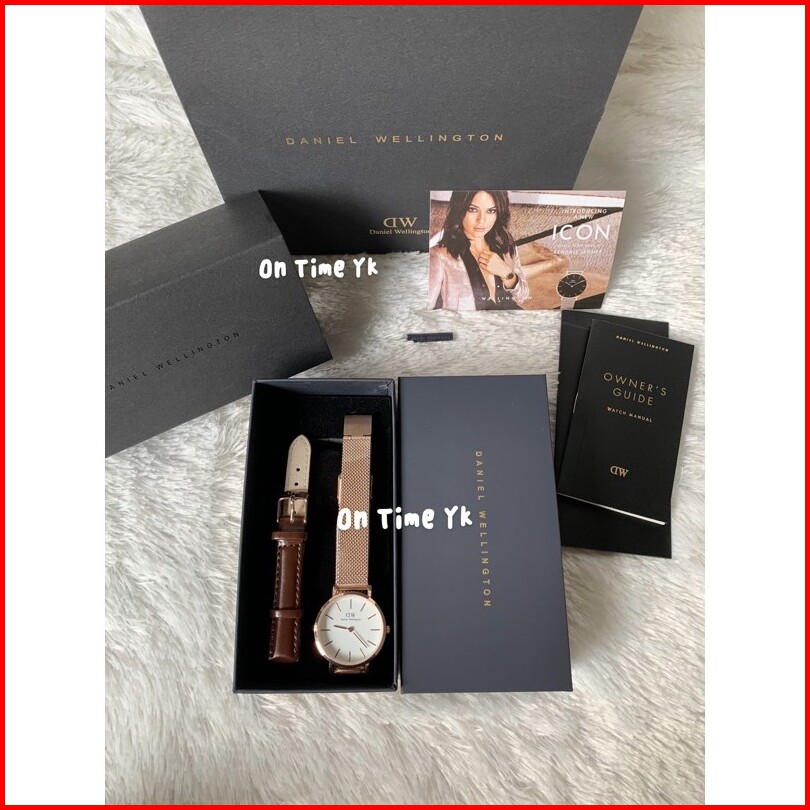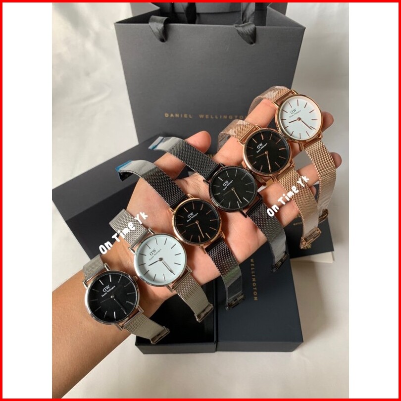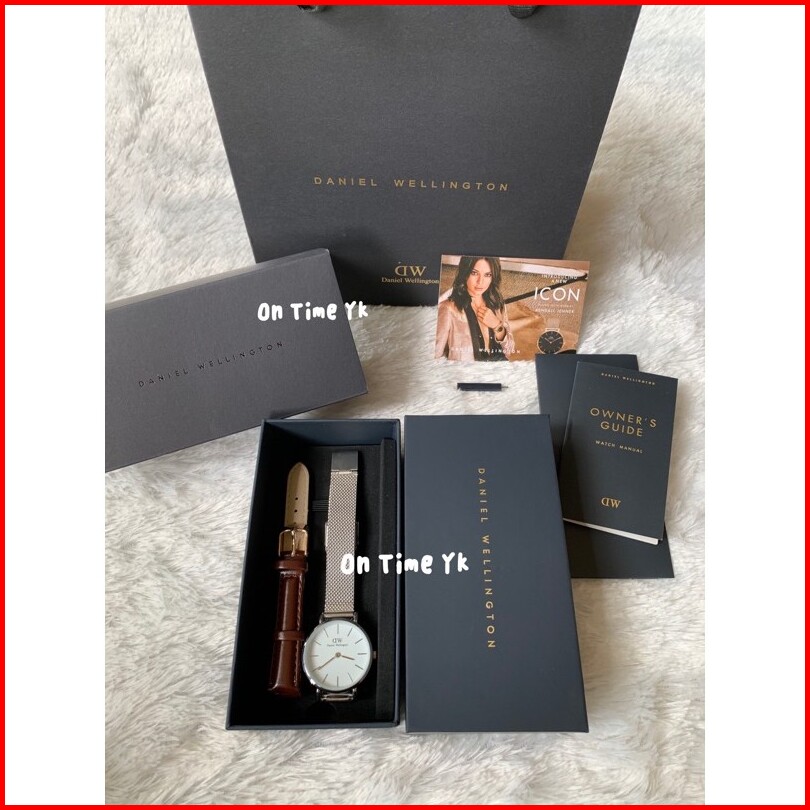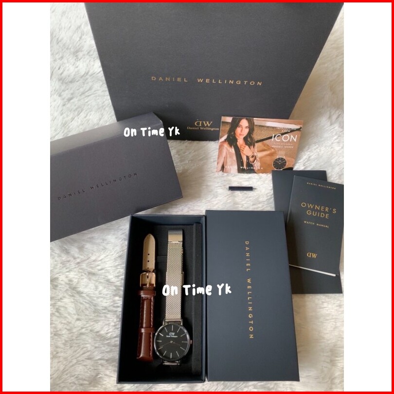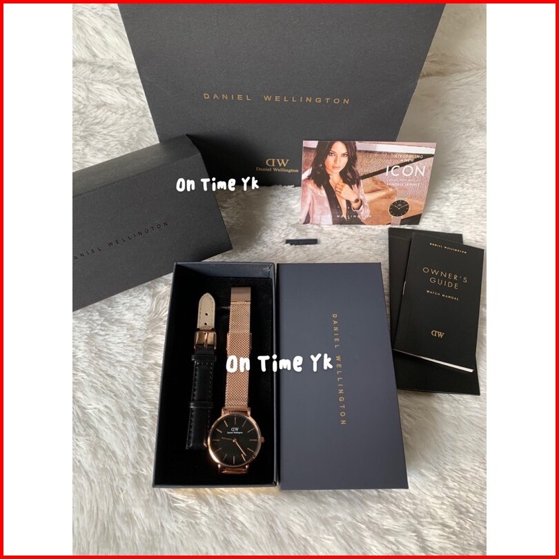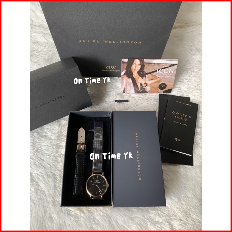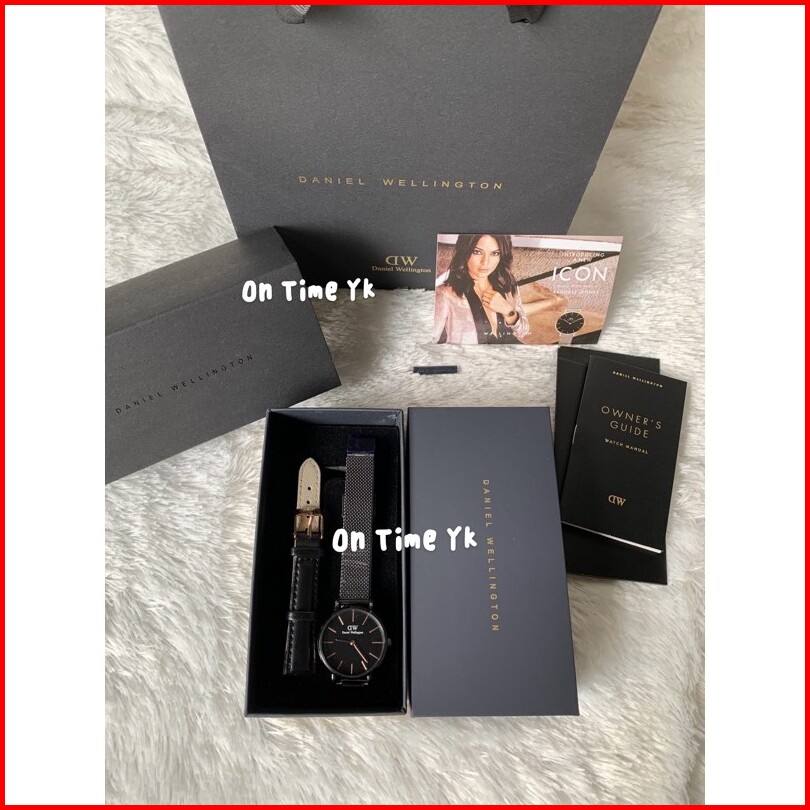 Jam Tangan Wanita Rosegold Silver Black 32mm Fullset Free Tali Kulit Batre Cadangan Paper Bag