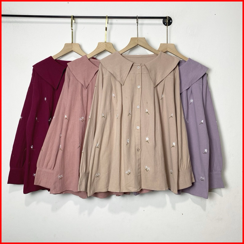 Nikita Blouse Ld 110 Kemeja Bordir Bunga Kerah Collar