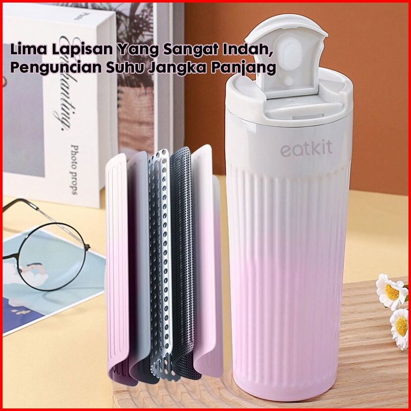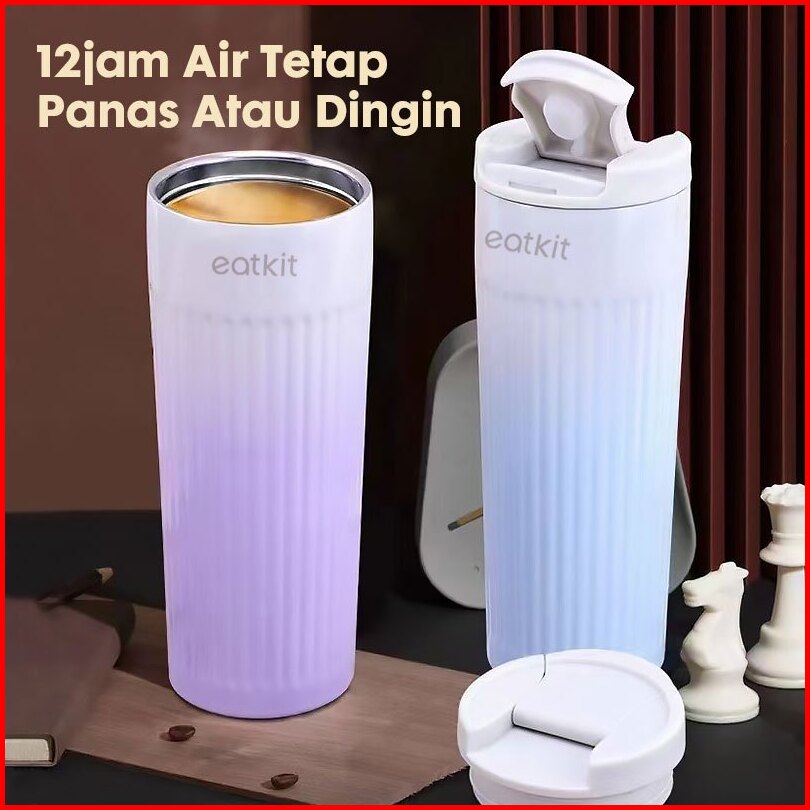 Eatkit 500ml Stainless Tumbler 304 Stainless Steel Tumbler Aesthetic Double Cover Botol Minum