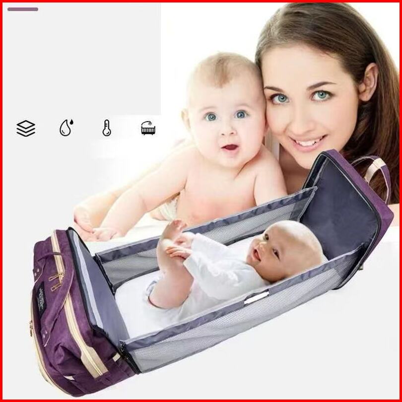 Tas Bayi Multifungsi Tempat Tidur Lipat Baby Diapers Bag Perawatan Tas Perlengkapan Ransel Backpack Canvas Anti Air