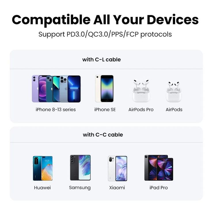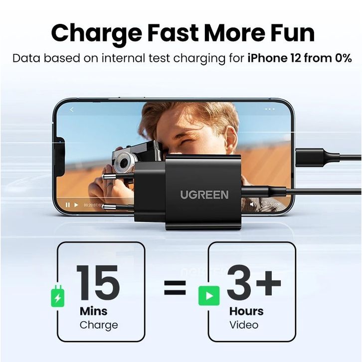 CASAN Ugreen Kepala Charger Iphone PD 20W Fast Charging Include Kabel Lightning MFI