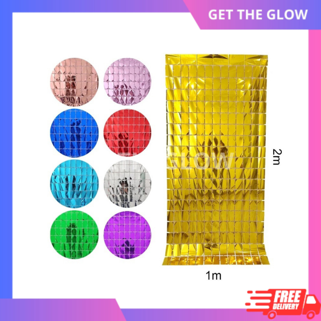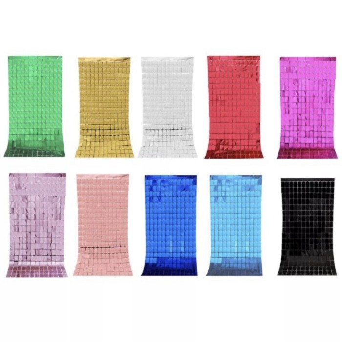 TIRAI FOIL BACKDROP KOTAK GLOSY WARNA WARNI / DEKORASI PERLENGKAPAN PESTA