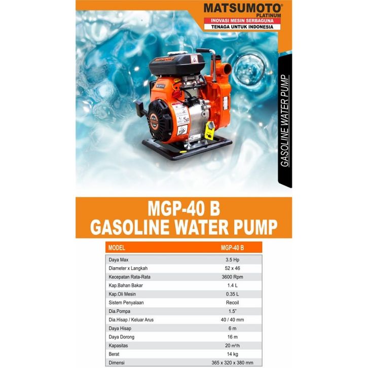 Waterpump Pompa Air 1.5" MGP-40B MATSUMOTO / Mesin Pompa Sedot Air Sawah Irigrasi 1,5 Inch MGP40B Water Pump MGP 40B MAT