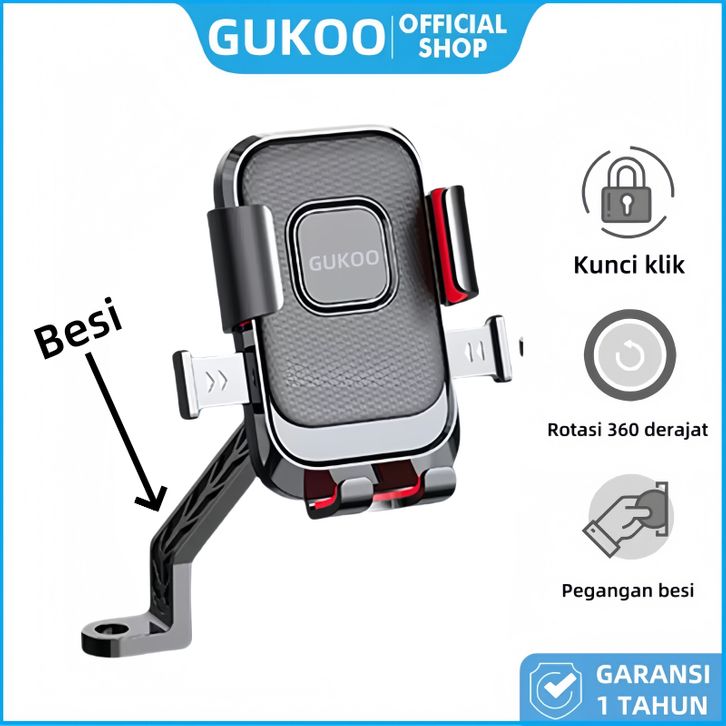 GUKOO Holder Motor Universal Bahan Besi Kuat 360° Rotasi Tipe untuk Spion Depan & Belakang Anti Goyang Stabil di Jalan