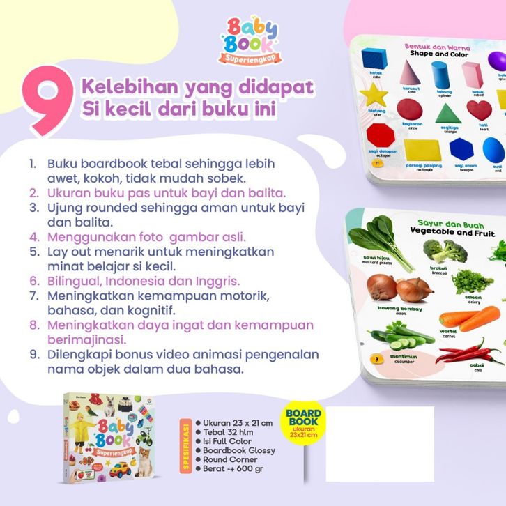 Buku Baby Superlengkap Sensory Newborn English Series Anak Bayi 0 6 12 Bulan 1 2 3 Tahun 100 Kata Hewan Kendaraan