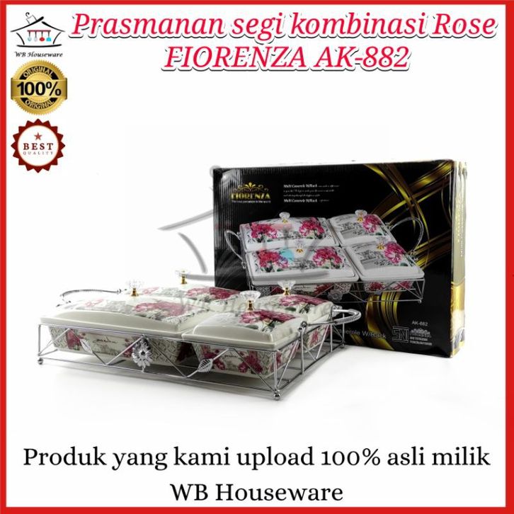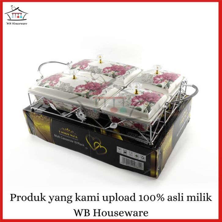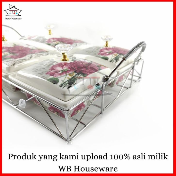 Wadah Saji Keramik Set Motif Bunga / Basi Pemanas / Wadah Prasmanan Set Penghangat Makanan Fiorenza AK-988