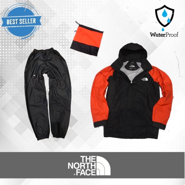 Jas Hujan Pria The North Face Raincoat Waterproof Material Goretex (Hitam Merah / Black Red)